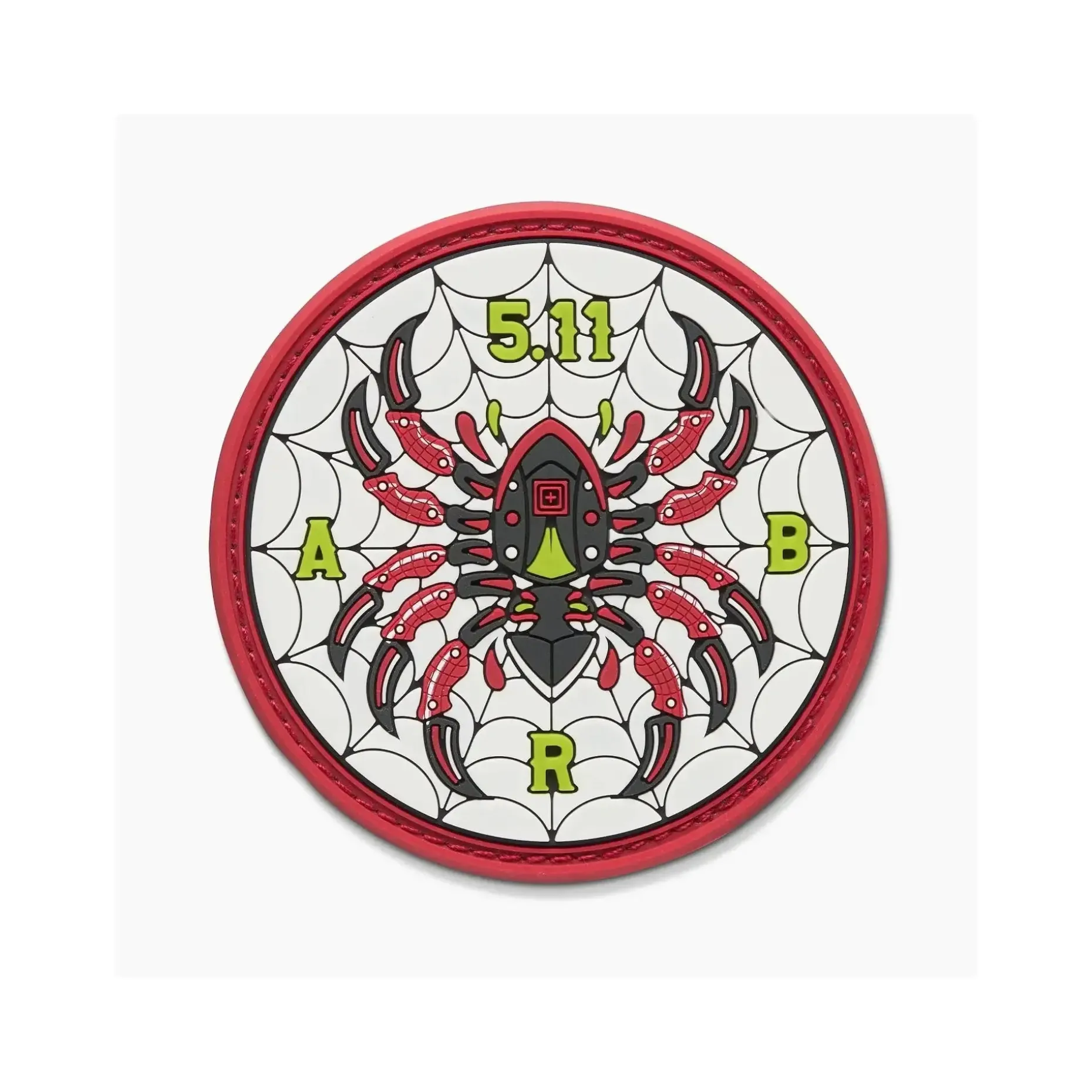 Der Patch Bladed Spider zeigt eine Spinne im taktischen 5.11 Design mit den Buchstaben ABR – always be ready im Netz.