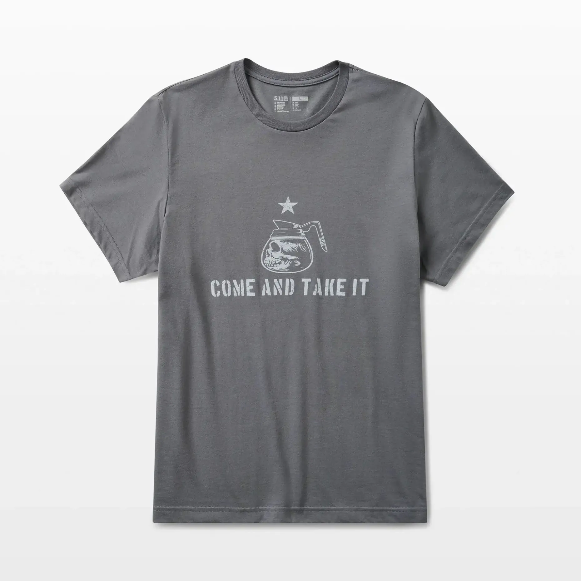Mit dem 5.11 Come and Take It T-Shirt erhältst Du ein funktionales Basic mit Statement-Print, das Komfort und Strapazierfähigkeit vereint. Das Shirt besteht aus einer ringsgesponnenen Baumwoll-Polyester-Mischung und überzeugt durch seine feuchtigkeitsableitende Eigenschaft, die Dir auch bei intensiven Aktivitäten ein angenehm trockenes Tragegefühl bietet. Das auffällige Come and Take It Motiv ist mit hochwertigen, farbbeständigen Druckfarben umgesetzt und bleibt auch bei Sonneneinstrahlung oder nach vielen Waschgängen intensiv und klar. Die verstärkten Doppelnähte an Saum und Ärmeln sowie das durchgehende Nackenband von Schulter zu Schulter verleihen dem Shirt zusätzliche Stabilität und Formbeständigkeit. Kombiniert mit der klassischen Passform und dem Rundhalsausschnitt bekommst Du ein T-Shirt, das Funktion, Komfort und langlebigen Style perfekt vereint.