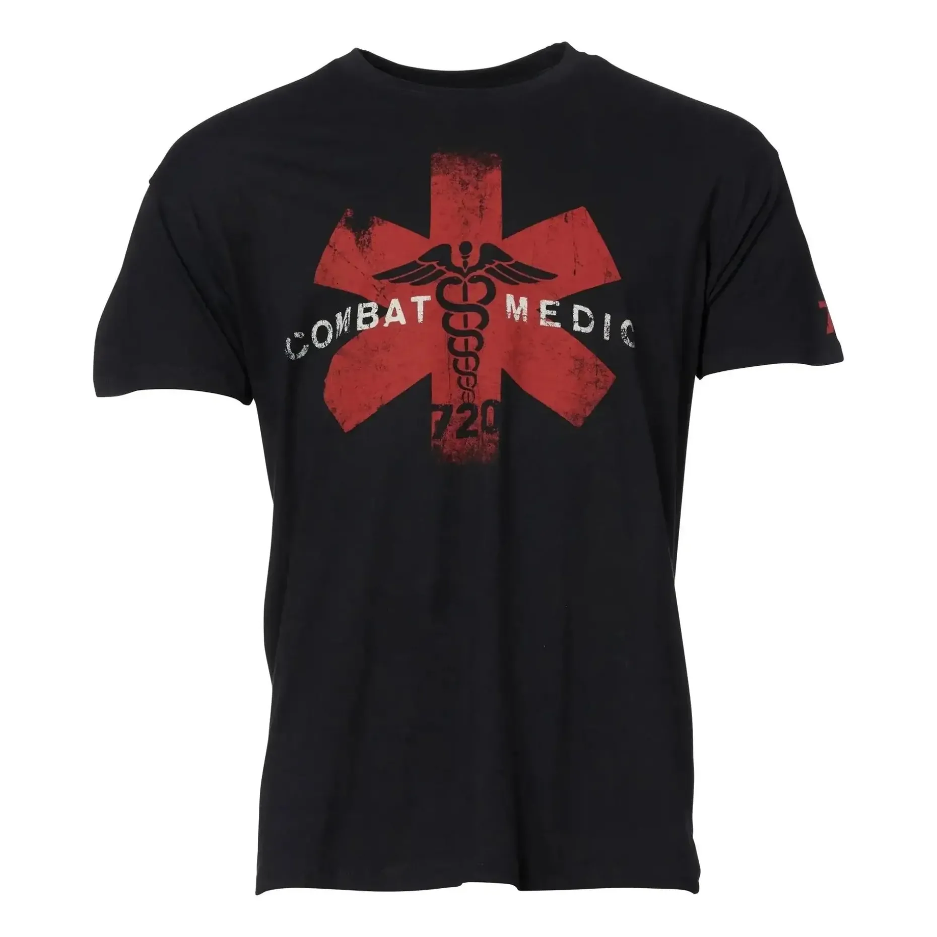Der Aufdruck mit Red Cross und Äskulapstab sowie der Schriftzug Combat Medic nimmt