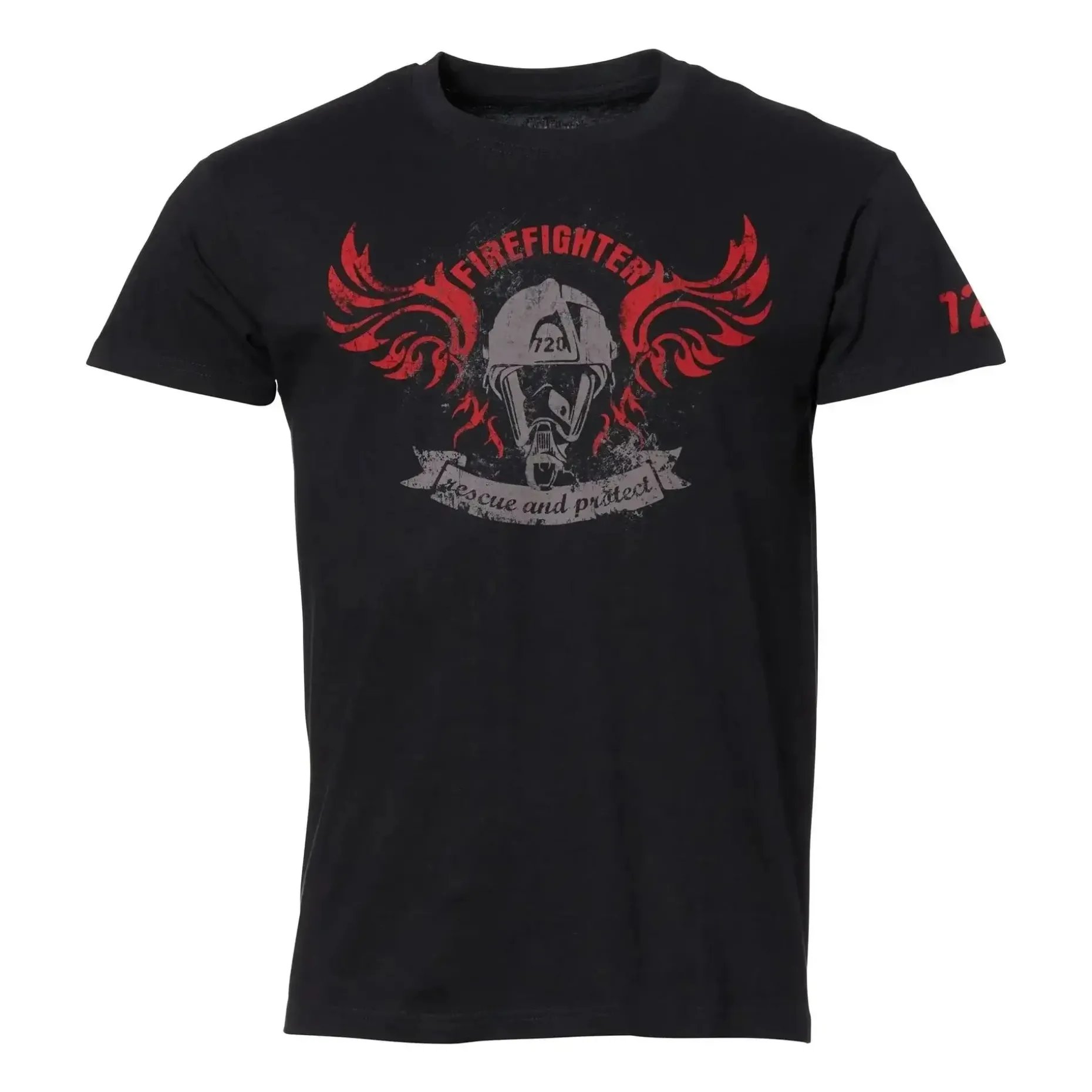 „Rescue and Protect“ ist das Motto aller Feuerwehr-Einsatzkräfte weltweit. Zusammen mit dem Aufdruck des Feuerwehrhelm und der Überschrift Firefighter das perfekte T-Shirt für alle Lebensretter. Mit 720er Schriftzug auf dem Oberarm und Logo-Print im Nacken.