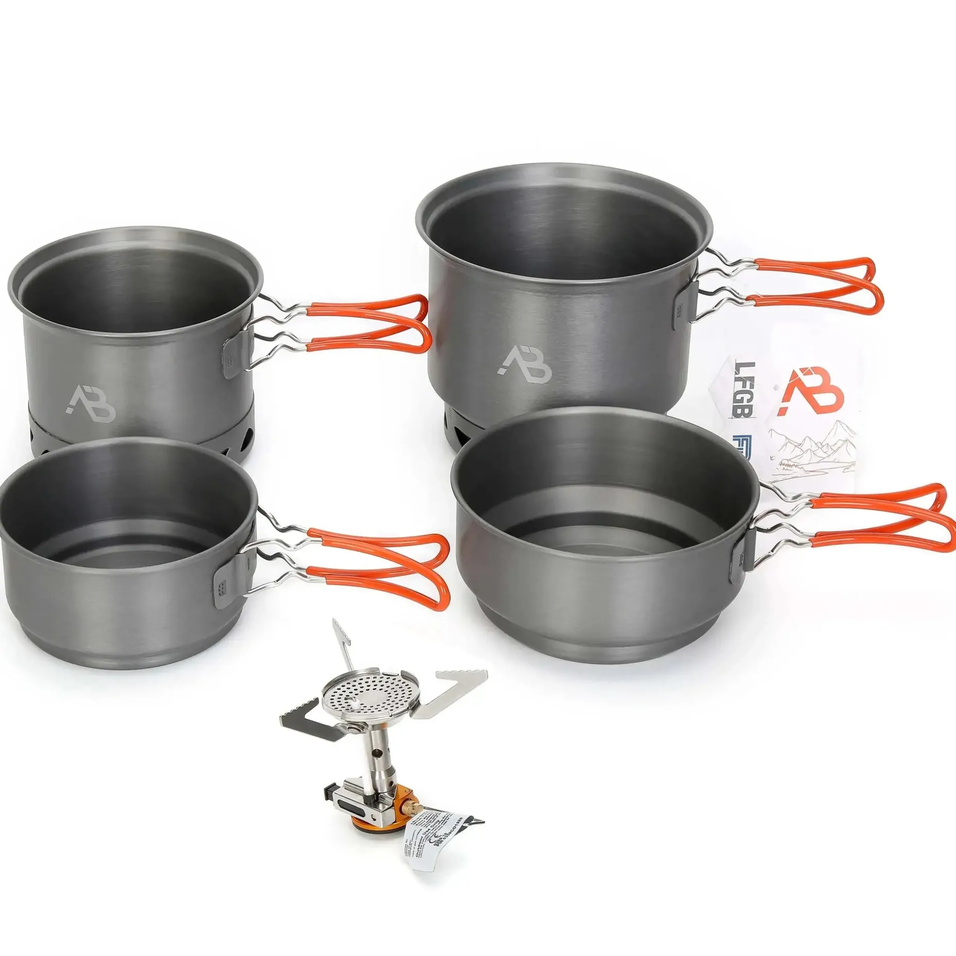 Das Kochset wird mit Wärmeaustauscher und Gaskocher geliefert. Letzterer ist mit einer klassischen Piezo-Zündung ausgestattet, was eine leichte Bedienung garantiert. Der Gaskocher kann mit allen handelsüblichen Gas-Schraubkartuschen betrieben werden.