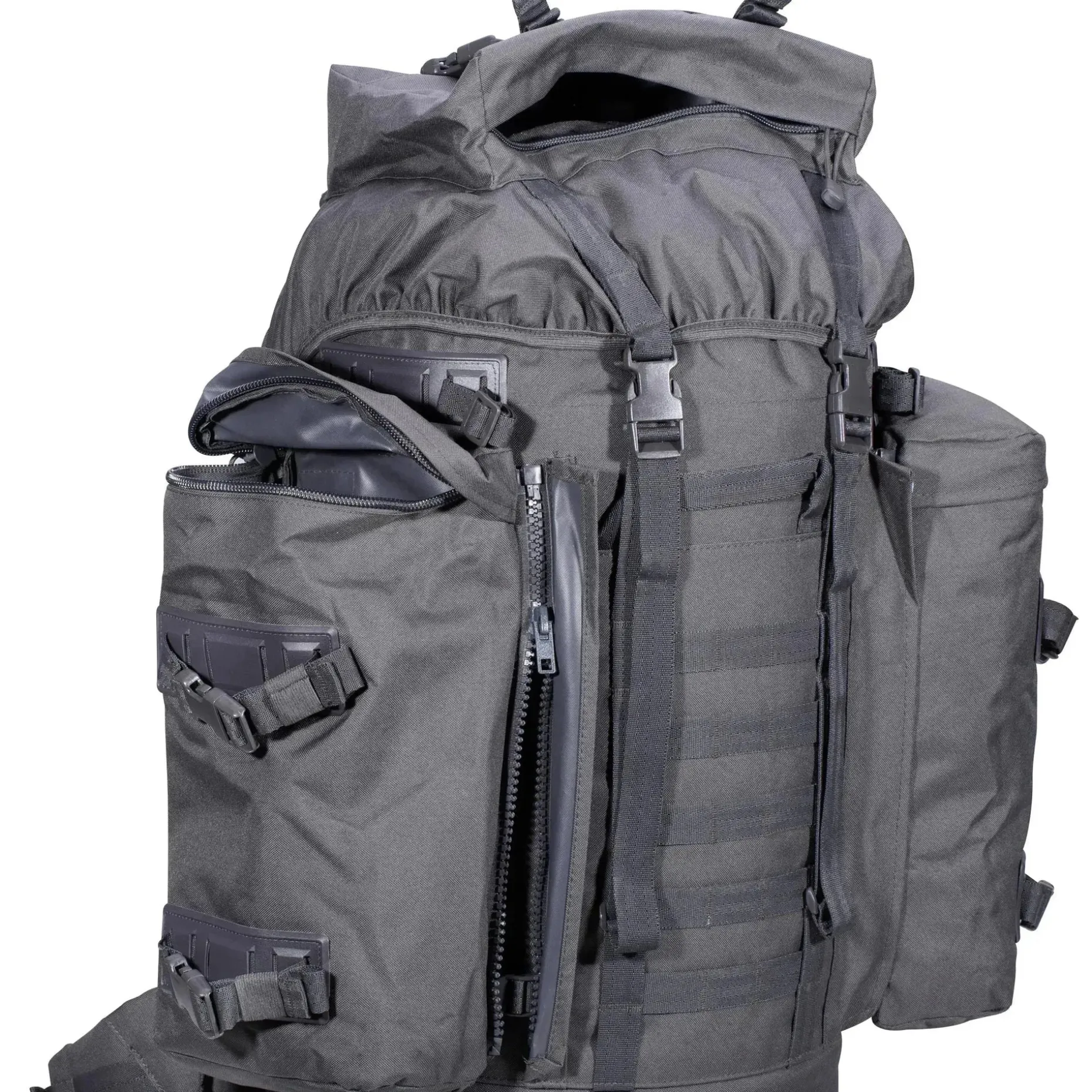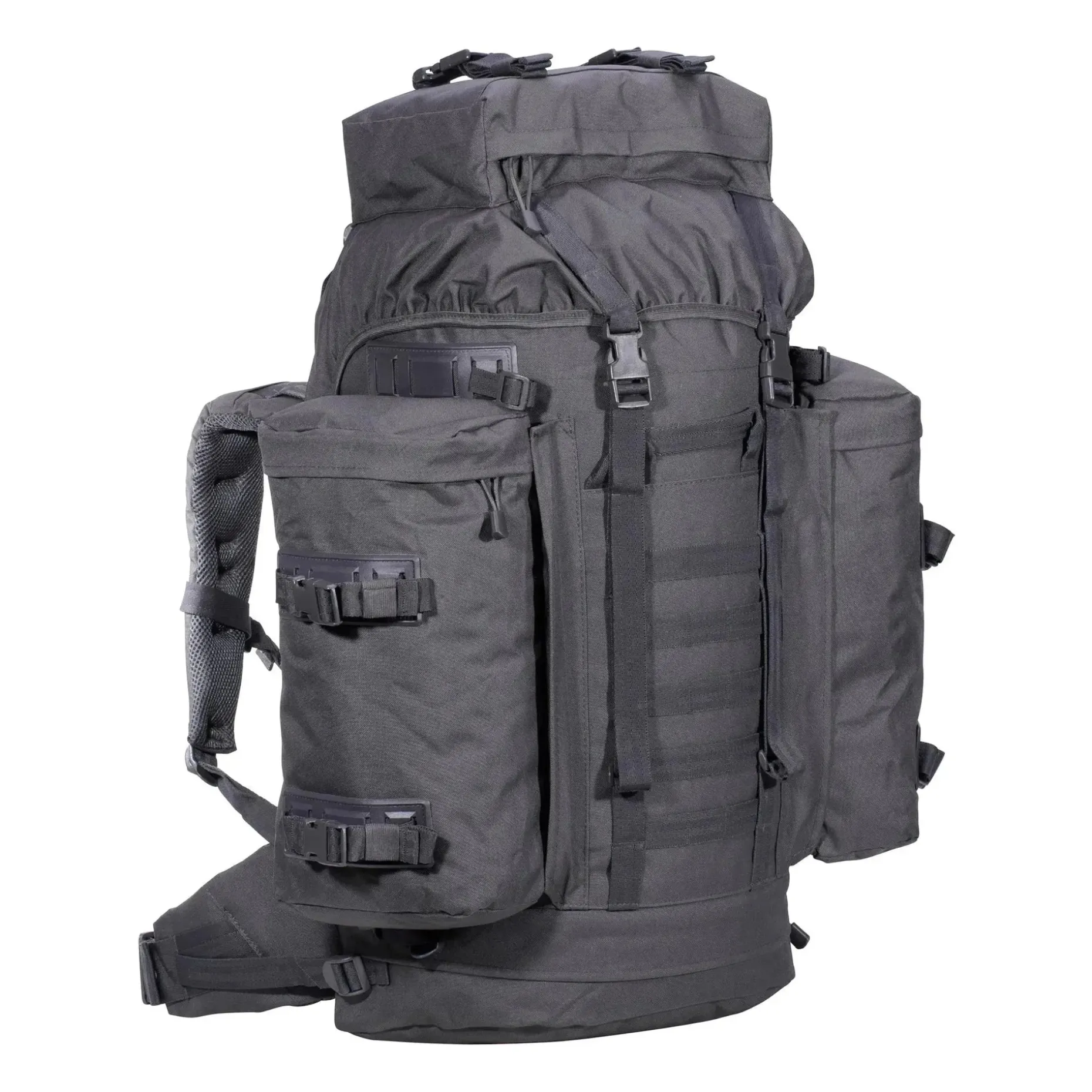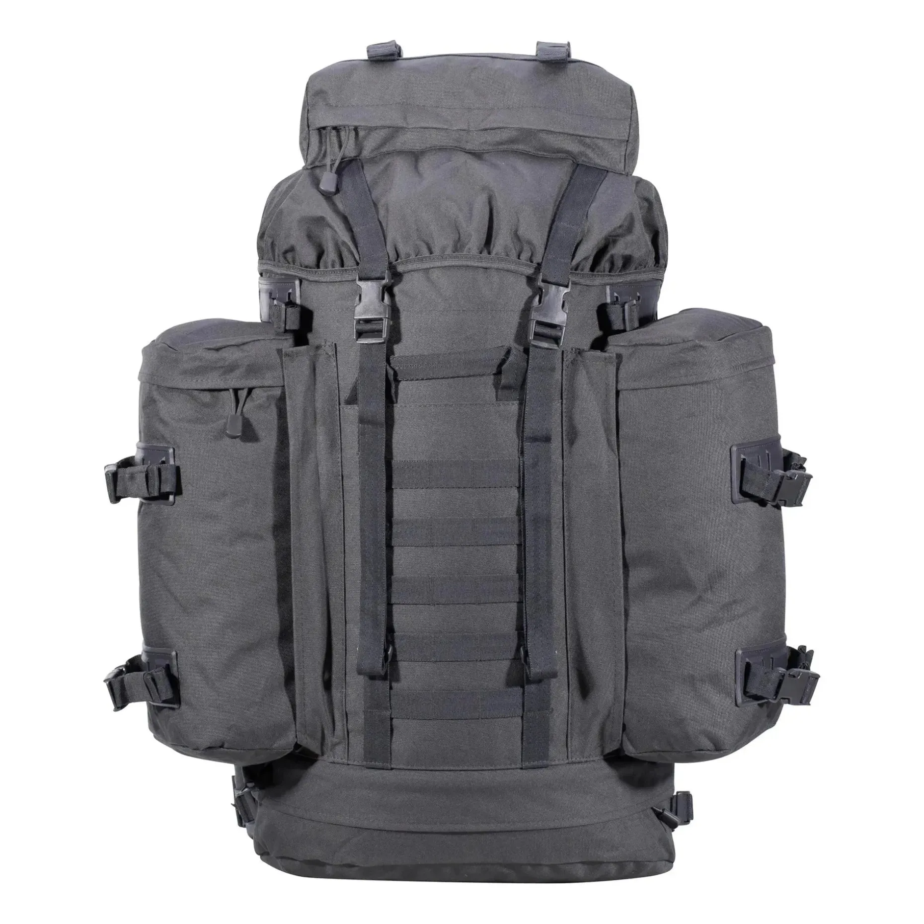 Der AB Rucksack BW Mountain 80 L ist ein Nachbau des beliebten Mountain-Rucksacks der Bundeswehr in sehr guter Importqualität. Der Rucksack verfügt über ein Gesamtvolumen von 80 Liter. Dieses setzt sich aus dem Hauptrucksack und den beiden abnehmbaren Seitentaschen zusammen.