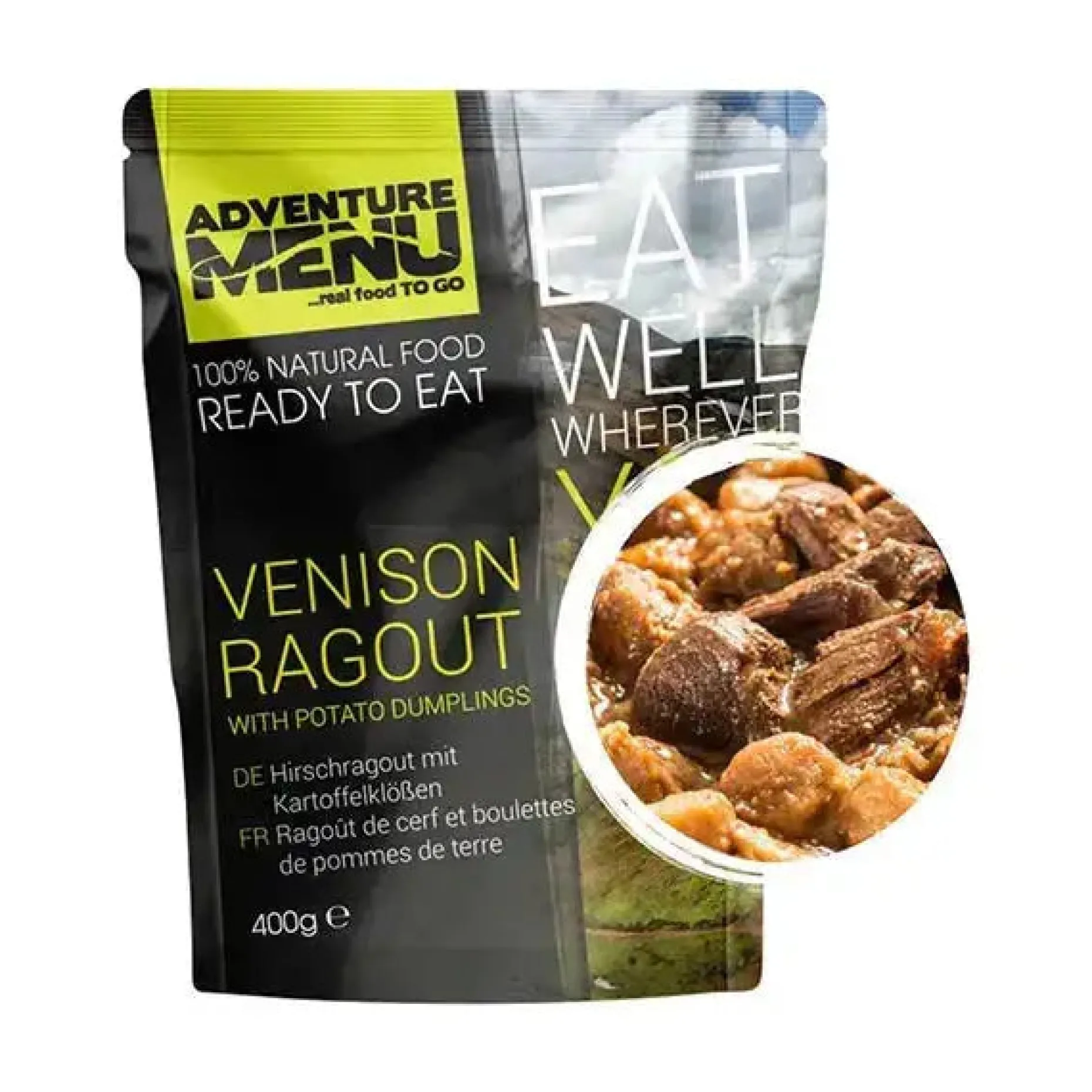 Entdecke das ultimative Powerpaket für Deine Abenteuerlust! Das Adventure Menu Hirschragout mit Kartoffelklößen ist perfekt für Deinen Notfallvorrat oder für Dein nächstes Outdoor-Abenteuer. Mit dieser sättigenden Mahlzeit wirst Du stundenlang mit Energie versorgt, damit Du jede Herausforderung meistern kannst.