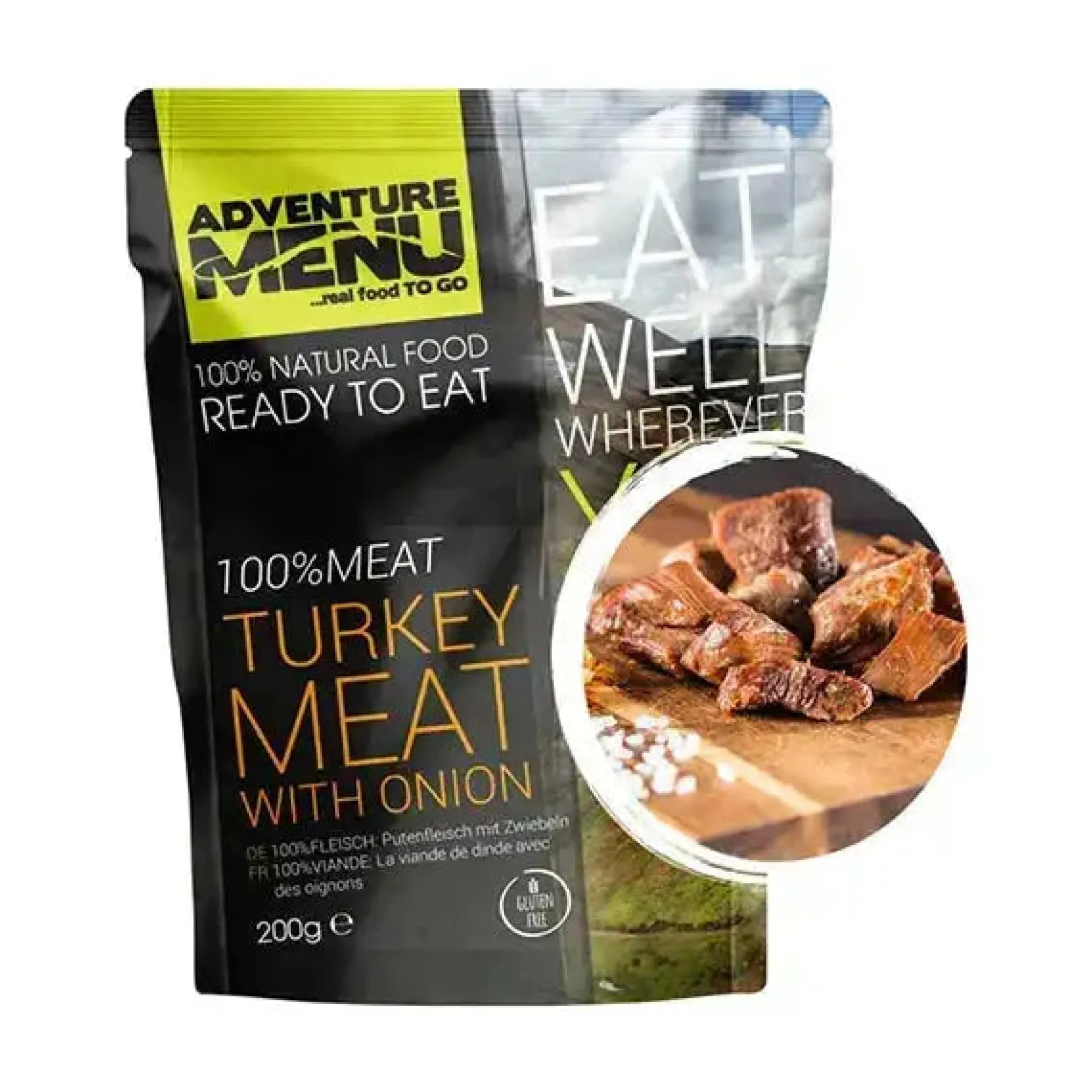 Entdecke das ultimative Powerpaket für Deine Abenteuerlust! Das Adventure Menu Putenfleisch mit Zwiebeln ist perfekt für Deinen Notfallvorrat oder für Dein nächstes Outdoor-Abenteuer. Mit dieser sättigenden Mahlzeit wirst Du stundenlang mit Energie versorgt, damit Du jede Herausforderung meistern kannst.