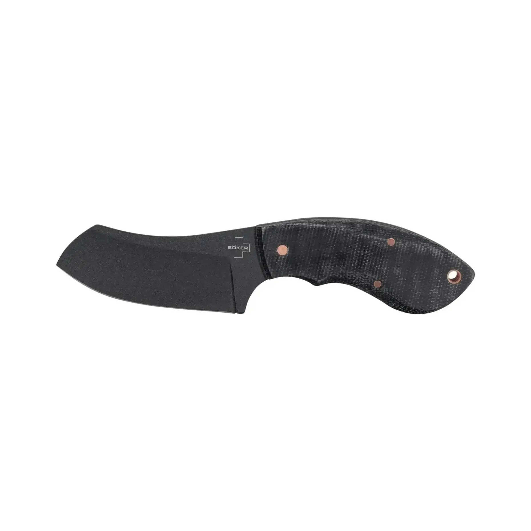 Auch die Griffschalen aus schwarzem Micarta sind ein echter Hingucker. Sie liegen satt in der Hand und sorgen für einen festen Griff, damit Du das Messer sicher führen kannst. Die Kupfernieten in den Griffen sind nicht nur optisch ein Highlight, sondern dienen auch als praktische Fangriemenöse.
