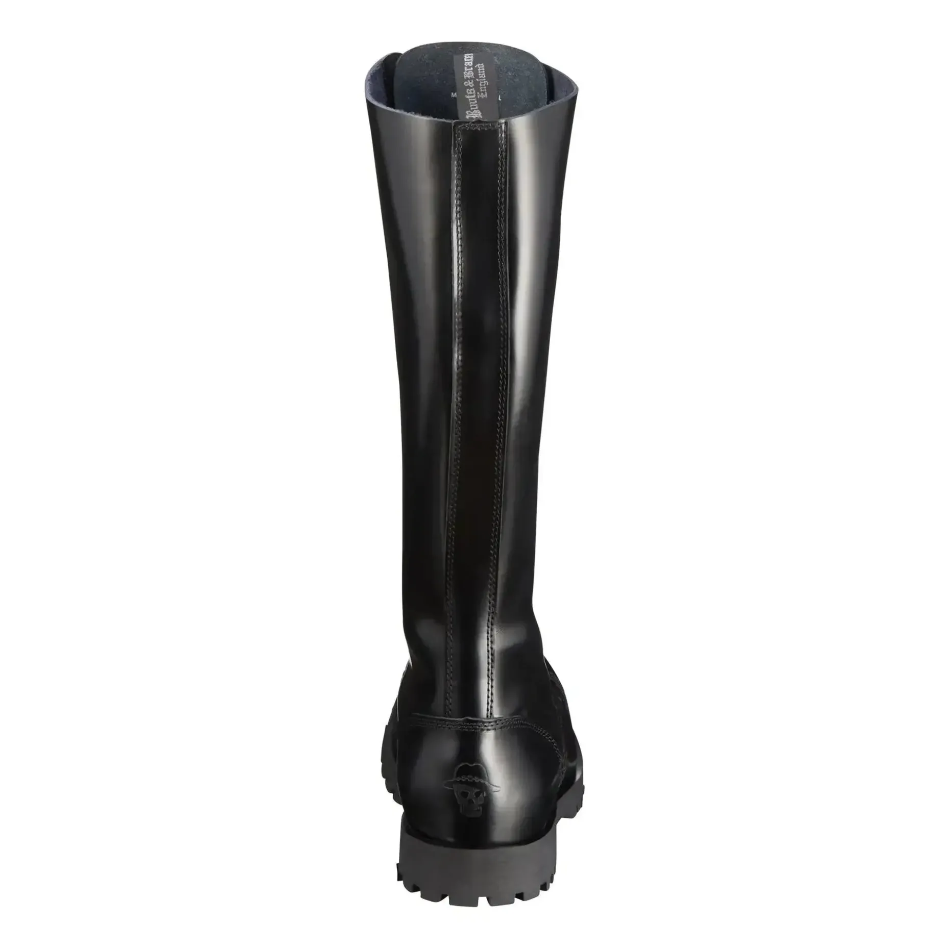 Der Boots & Braces Stiefel 20-Loch schwarz mit Stahlkappe und Quernaht überzeugt mit hohem Tragekomfort. Durch die asymmetrischen Leisten sind sie bequemer als gerade geschnittene Modelle. Das Glattleder ist poliert und dementsprechend glänzend. Während die dreifachen Nähte an allen Strukturnahtstellen sie besonders stabil machen, ist die Gummisohle mit Zierschrauben zum besseren Halt ausgestattet.