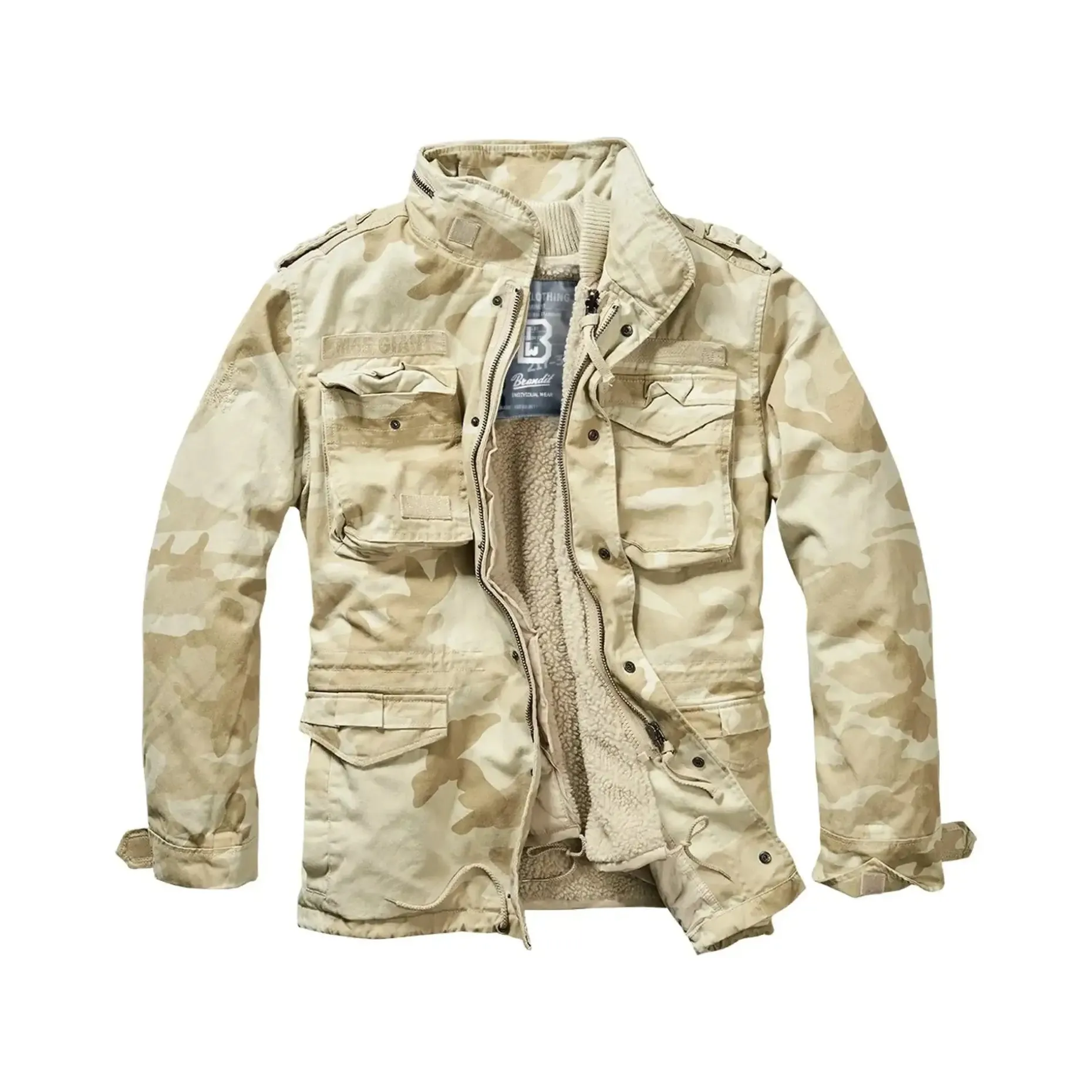 Die Brandit Feldjacke M-65 Giant ist ein echter Klassiker. Sie ist durch die mit einem Reißverschluss trennbare, gesteppte Innenjacke und das warme Teddy-Innenfutter ideal für den Winter. Die Innenjacke ist hochwertig verarbeitet und kann auch problemlos solo getragen werden, während die Außenjacke aus robuster, gewaschener Baumwolle ist und ohne Futter ebenso als Übergangsjacke im Frühjahr und Herbst getragen werden kann. Typisch M65 hat auch die Giant zwei große Brusttaschen, zwei geräumige Pattentaschen vorne sowie eine versteckte Baumwollkapuze mit Kordelzug und Schulterriegel mit Druckknopf. Viele Applikationen wie zum Beispiel die Brustpatches geben dieser Jacke den richtigen Look.