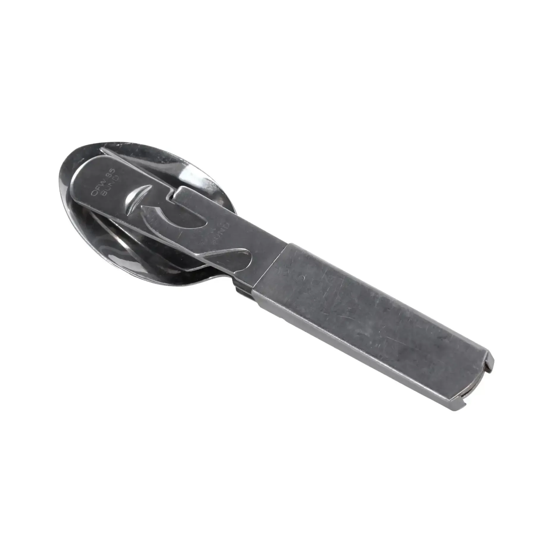 Praktisches Feldessbesteck aus Beständen der Bundeswehr. Dieses klassische Bundeswehr-Besteck besteht aus vier Teilen: Messer, Gabel, Löffel und einer Halterung mit integriertem Dosen- und Flaschenöffner. Alle Bestandteile lassen sich platzsparend ineinander stecken und sind somit ideal für unterwegs geeignet. Robuste Ausführung aus rostfreiem Stahl – konzipiert für den täglichen Einsatz im Feld.