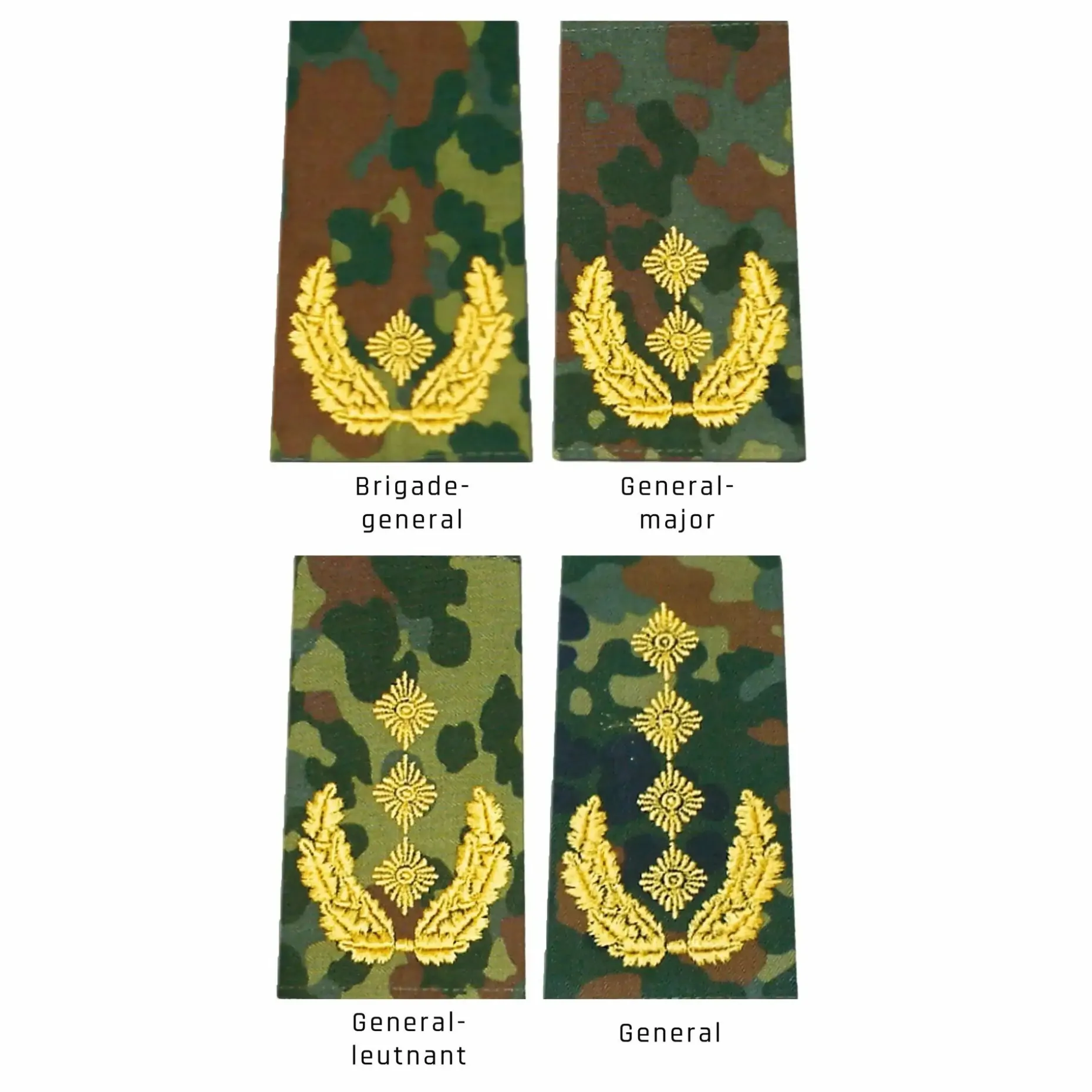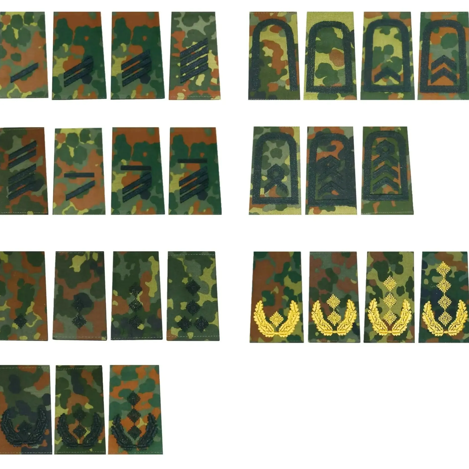 Die Bundeswehr Rangabzeichen sind aus strapazierfähigem Material gefertigt und bieten eine einfache Befestigungsmöglichkeit an der Uniformjacke. Von Unteroffizier bis General kann mit den Schulterschlaufen jeder Dienstgrad präzise dargestellt werden.