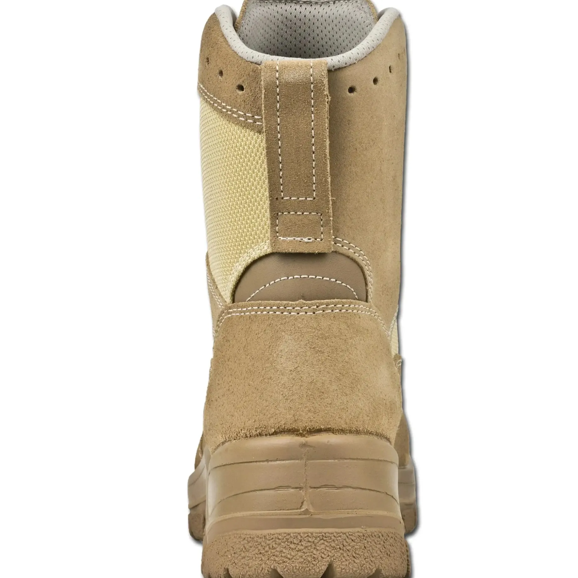 Die rutschfeste Profilgummisohle mit PU-Dämpfungskeil sorgt für einen sicheren Halt, auch auf unebenem Gelände. Der Schuh ist nicht kreidend, öl- und benzinfest sowie antistatisch, was ihn zu einem zuverlässigen Begleiter bei allen militärischen Einsätzen macht.