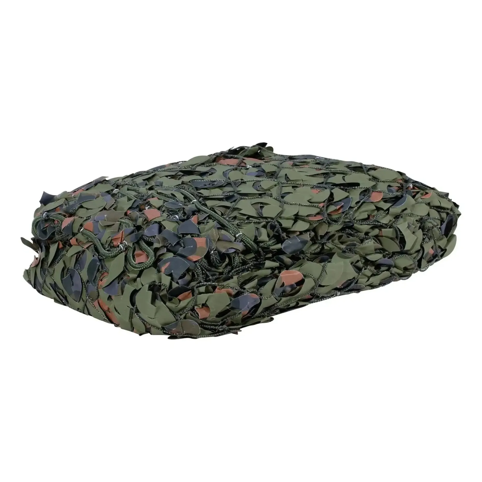 Das Tarnnetz im 3D Design ist wendbar von olivgrün nach braun und daher in verschiedenen Regionen und Jahreszeiten verwendbar. Das reißfeste Polyestermaterial ist wasser- und pilzresistent und kann problemlos dauerhaft im Freien verwendet werden. Das Tarnmuster lässt die Konturen verschwinden und löst die Silhouette gut auf. Die Leichtversion wurde hier auf ein robustes Trägermaterial bestehend aus einem kunststoffummanteltem Netzgewebe befestigt. Daher ist dieses Netz speziell für extreme Anwendungen gedacht.
