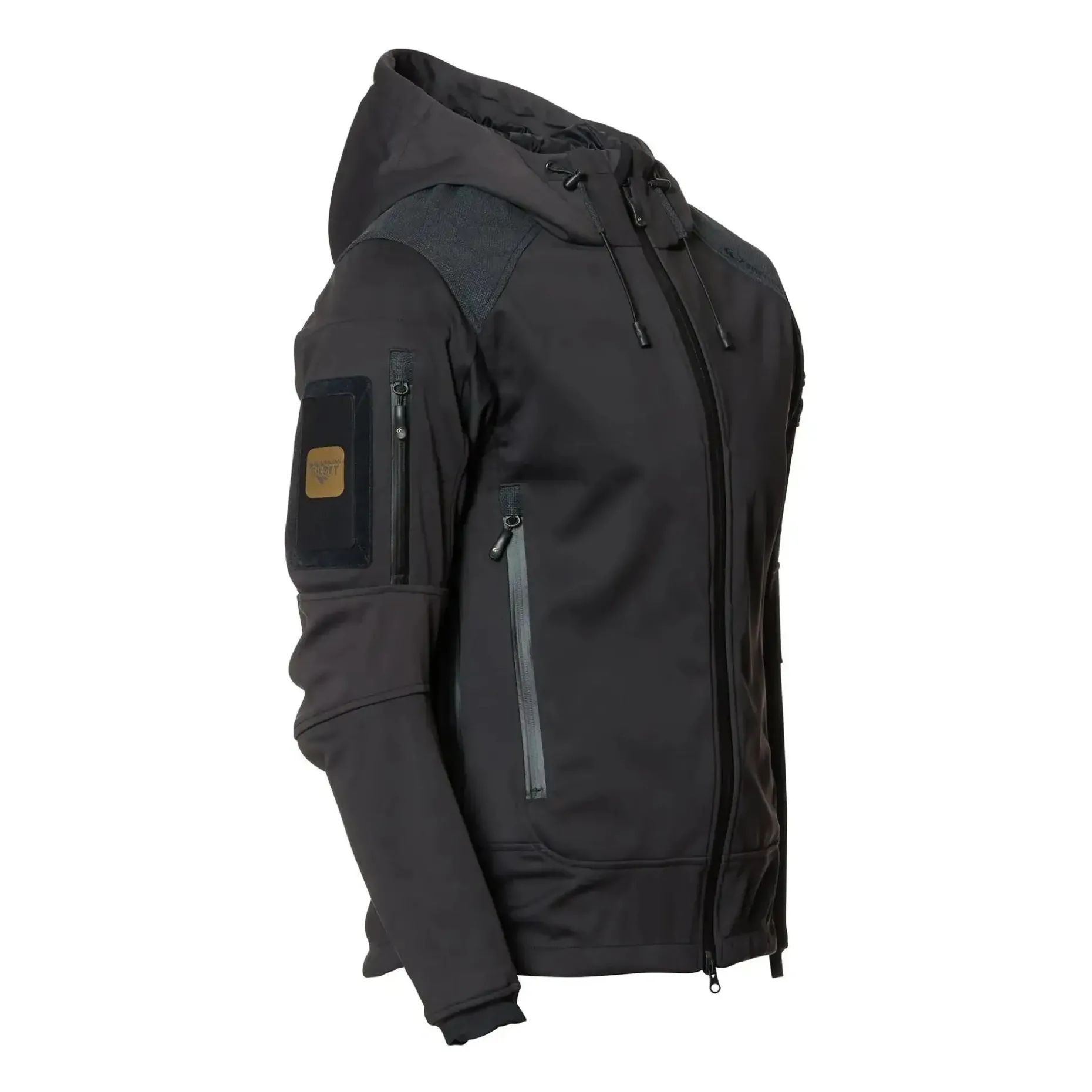 Die Softshelljacke Spezialkräfte ist in Schwarz, Oliv und Multicam erhältlich.