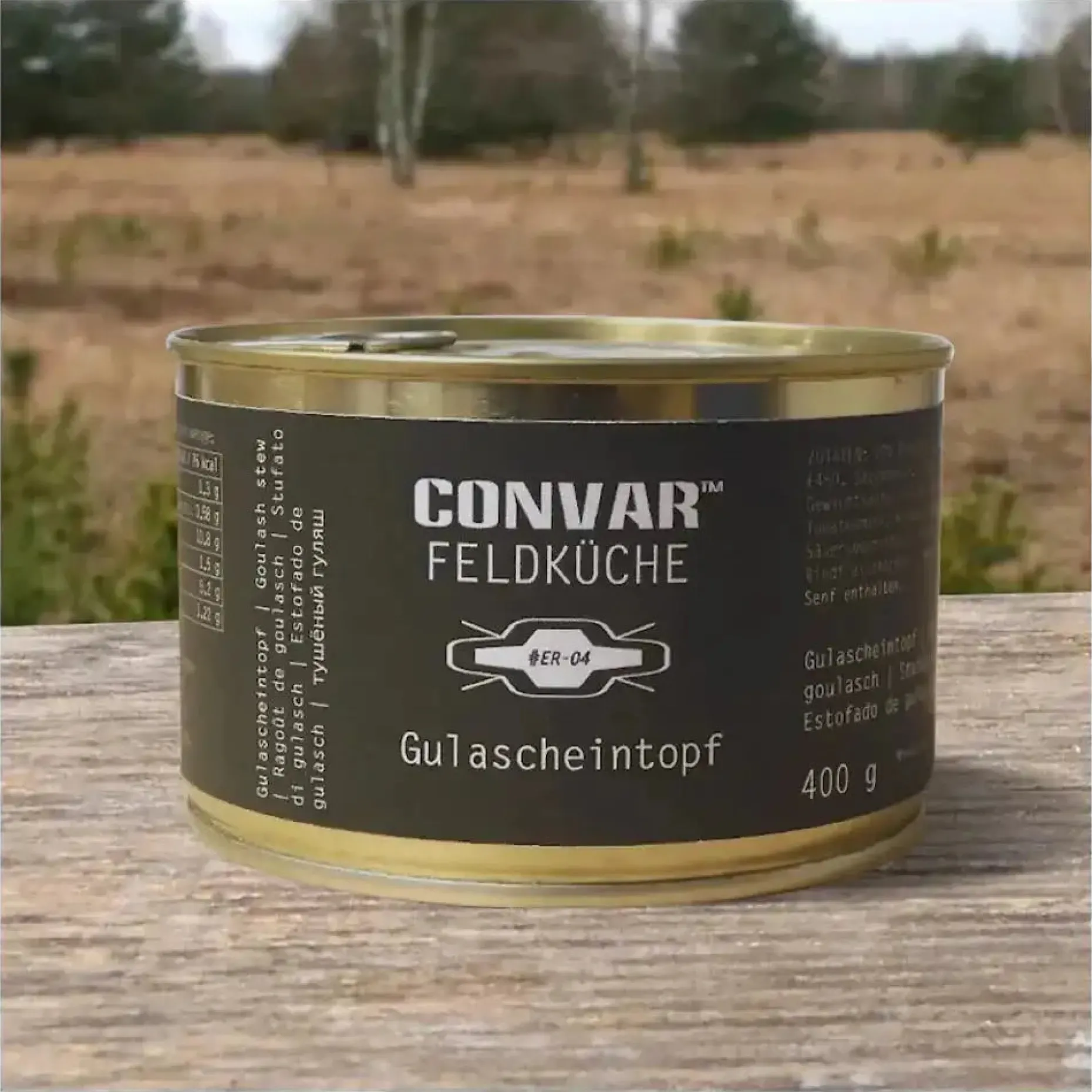 Der leckere Convar-7 Feldküche Gulascheintopf ist ein portionsgerecht abgefülltes, lange haltbares Lebensmittel, das sich sehr gut für den Notvorrat eignet. Die sofort genießbare Mahlzeit ist dank der robusten Dosen stapelbar und kann somit platzsparend verstaut werden. Das Gericht kann entweder erwärmt oder kalt gegessen werden.