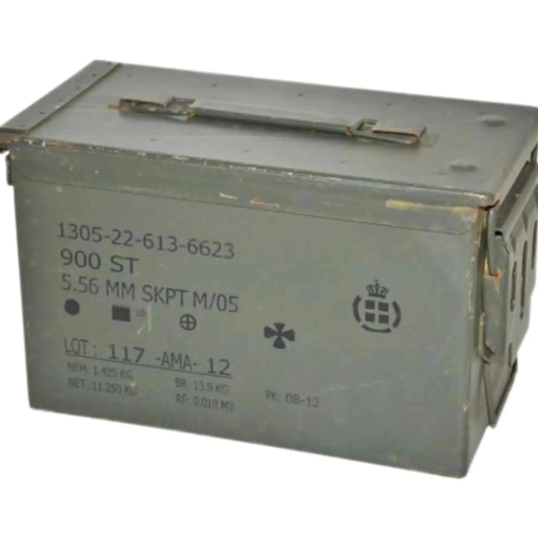 Die Kiste fasst etwa 900 Patronen im Kaliber 5,56 mm und ist dank ihrer stabilen Konstruktion ideal für Outdoor, Werkstatt, Hobby oder als Dekoration geeignet.