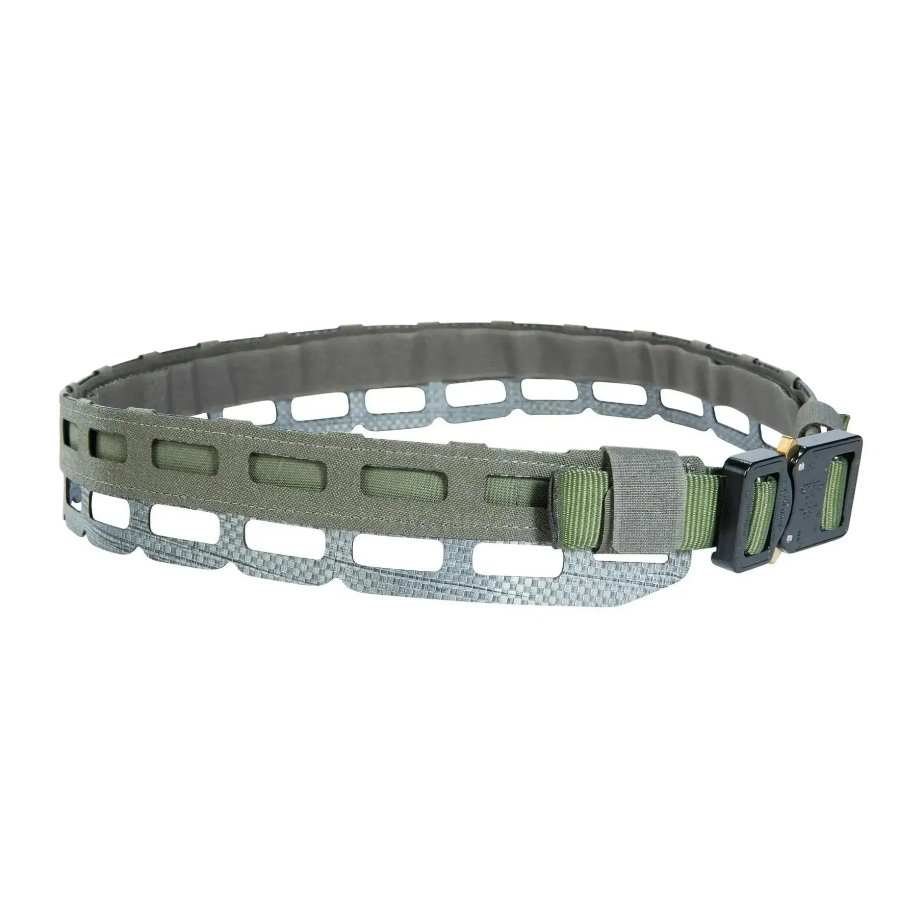 Mit der 25 mm COBRA®-Schließe von AustriAlpin bist Du auf höchste Sicherheit und Stabilität eingestellt. Das innovative Lasercut-MOLLE-System bietet Dir optimale Befestigungsmöglichkeiten für Deine Ausrüstung. Besonders praktisch: Der Gürtel kann mit einem Flauschklett-Innengürtel verwendet werden und wird mit abgedecktem Klett ausgeliefert, um störendes Hängenbleiben zu vermeiden.
