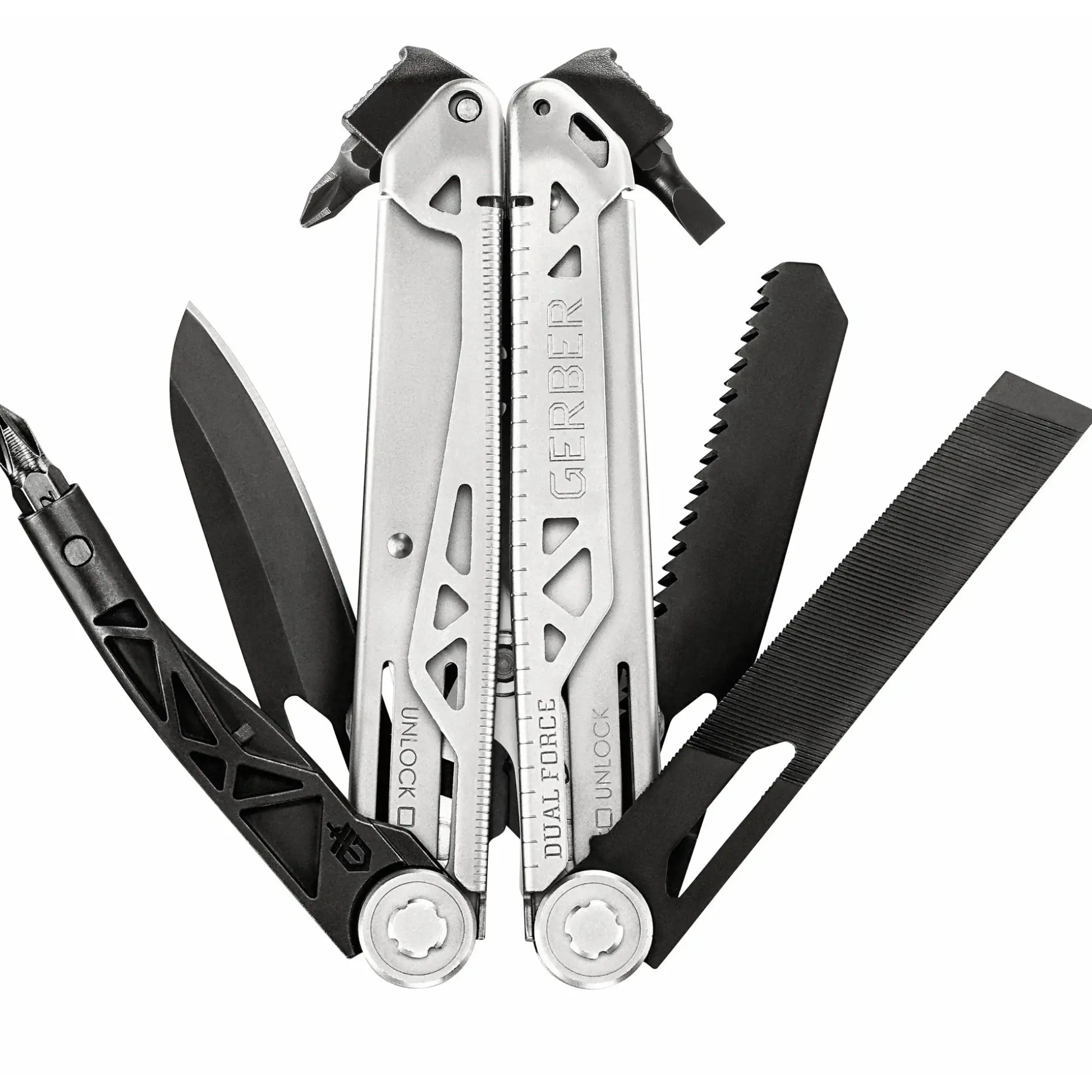 Wenn andere Multi-Tools aufgeben, legt das Gerber DUAL-FORCE erst richtig los. Dieses robuste Multifunktionswerkzeug wurde für echte Herausforderungen konzipiert – sei es beim Outdoor-Abenteuer, im täglichen Einsatzdienst oder auf dem Bushcraft-Trip. Die verstärkte Zangenkonstruktion mit 2-fach verstellbarem Gleitgelenk bietet doppelte Kraft und Kontrolle, selbst bei widerspenstigen Schrauben oder Drahtverbindungen. Die Center Axis-Technologie des Bit-Schraubendrehers sorgt für perfekte Hebelwirkung, sodass Du auch unter schwierigen Bedingungen präzise arbeiten kannst. Dank arretierbarer Außenwerkzeuge, darunter ein scharfes Messer, eine Säge und eine Meißelspitze, hast Du alle wichtigen Tools sofort griffbereit. Geliefert wird das Ganze im praktischen Gürteletui – bereit, wenn Du es bist.