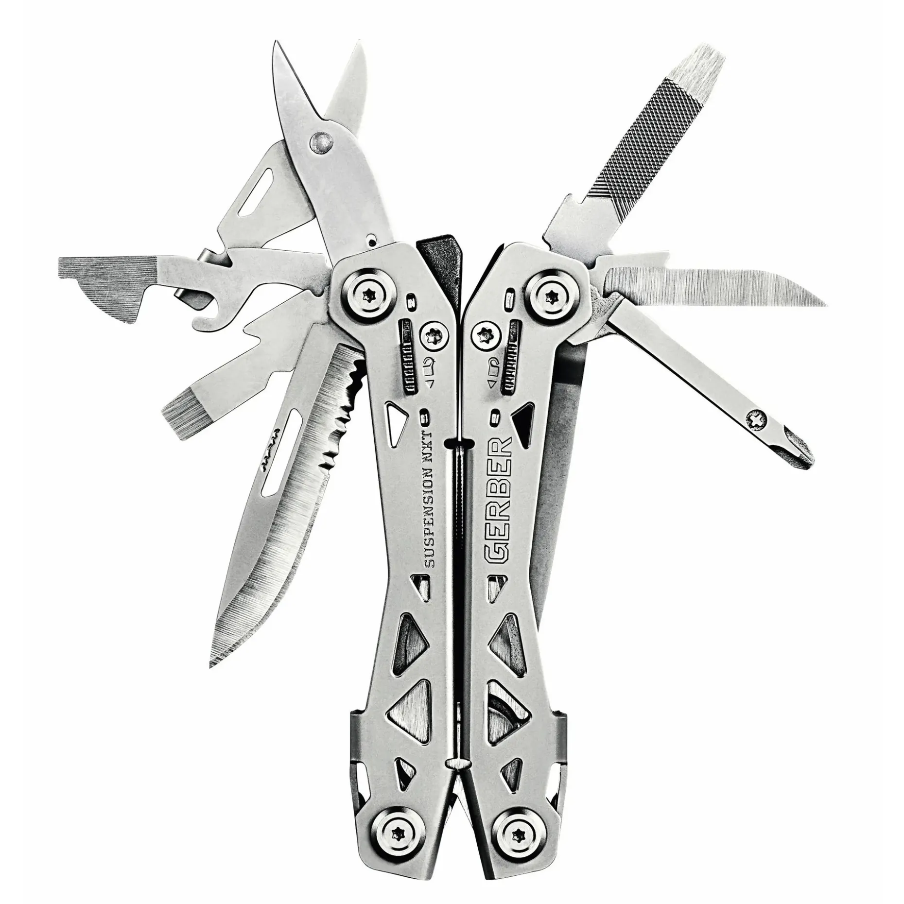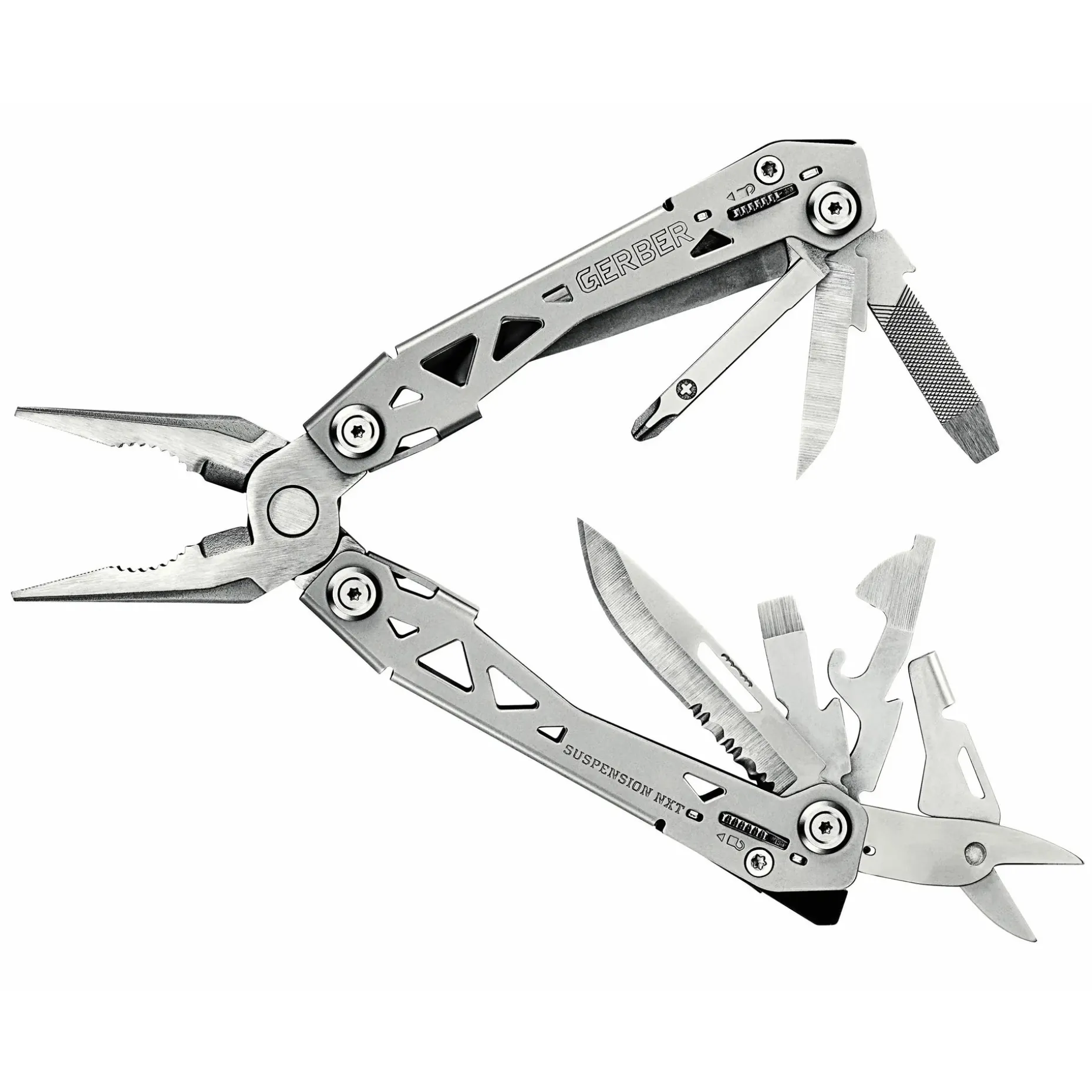 Mit dem SUSPENSION-NXT bringt Gerber die bewährte Funktionalität seines Klassikers auf das nächste Level. Das überarbeitete Butterfly-Design mit integrierten Außenwerkzeugen macht das Handling noch intuitiver – Du kannst alle Tools schnell ausklappen und dank Wedge Lock sicher arretieren. Die federunterstützte Zange liegt präzise in der Hand und kombiniert Spitzzange, Greifzange und Drahtschneider in einem. Insgesamt 15 Funktionen – darunter Schere, Feile, Teilwellenschliff-Klinge und vier Schraubendreher – bieten Dir in Alltag, Einsatz oder Outdoor-Abenteuer höchste Vielseitigkeit. Durch den praktischen Taschenclip hast Du Dein Tool jederzeit griffbereit – ohne Etui, ohne Umwege.