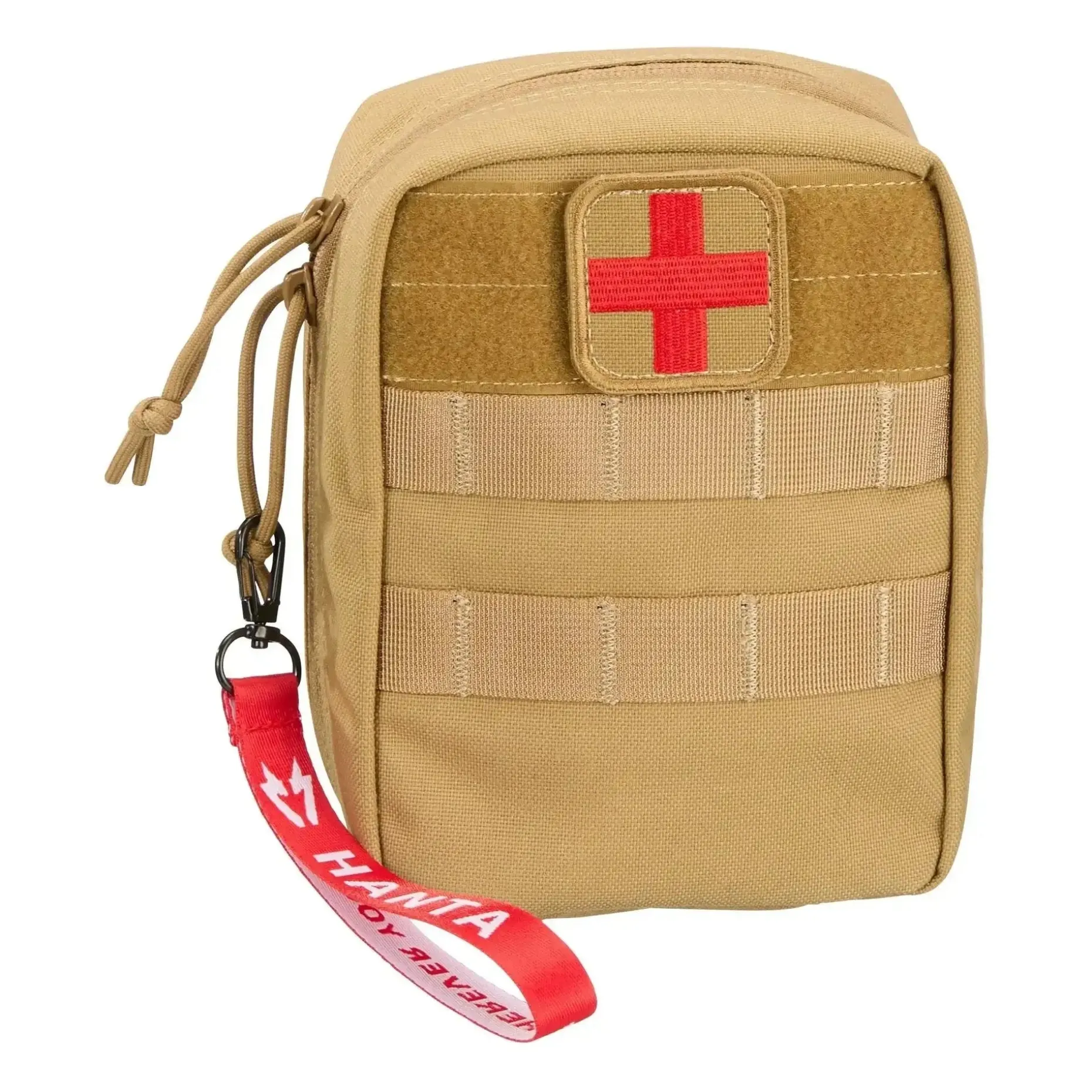 Die Hanta Erste Hilfe Pouch First Aid verfügt über Gummibänder zum sicheren Verstauen von Verbänden, Pflastern, Kompressen und anderem Zubehör. Mit dem roten Band zur Identifikation kannst Du Dein Erste Hilfe-Set auch in Notsituationen schnell finden. Das Rote Kreuz-Patch auf der Vorderseite dient zur Erkennung und ermöglicht es anderen, im Notfall zu helfen.