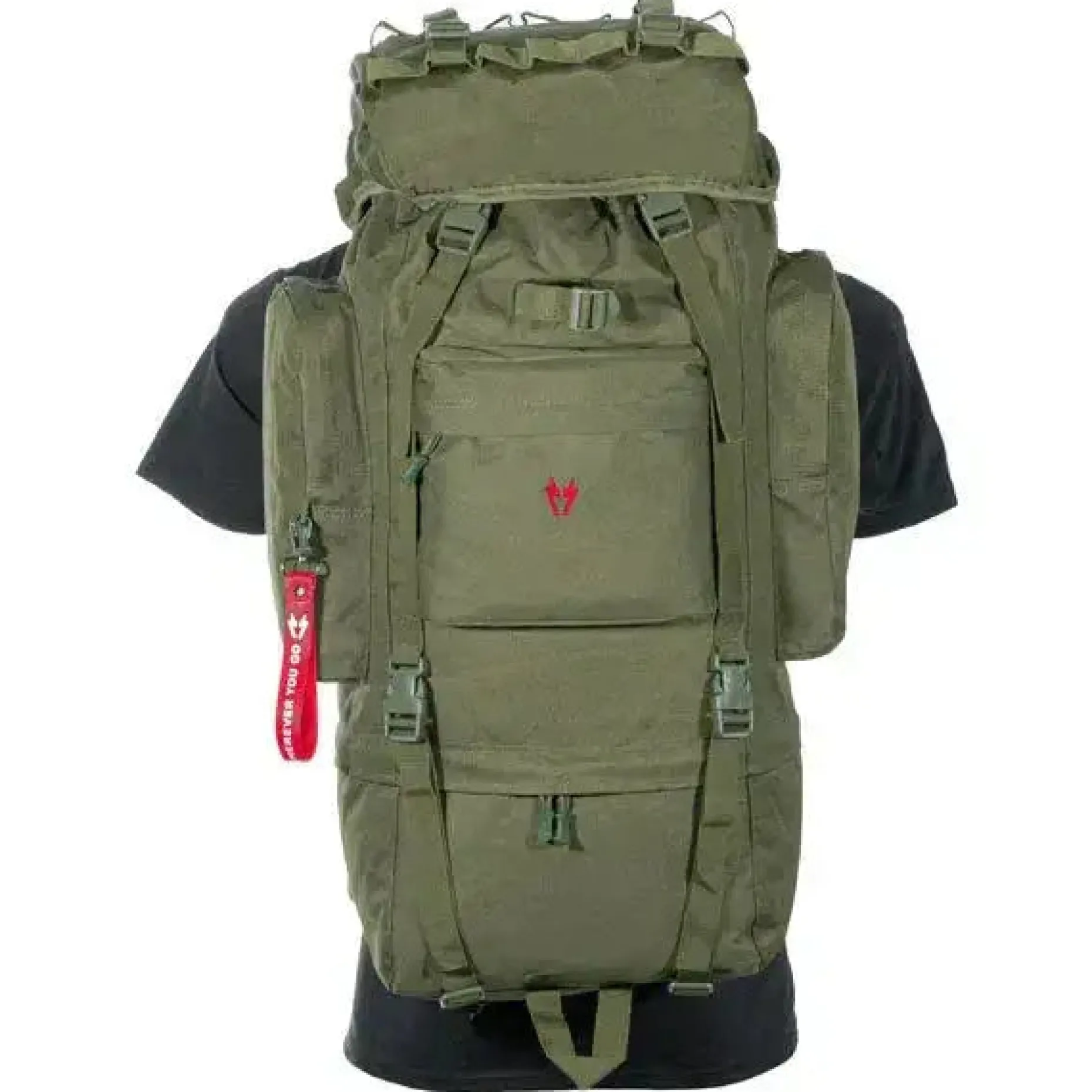 Der Rucksack Sela 65 L ist in Schwarz und Oliv erhältlich.