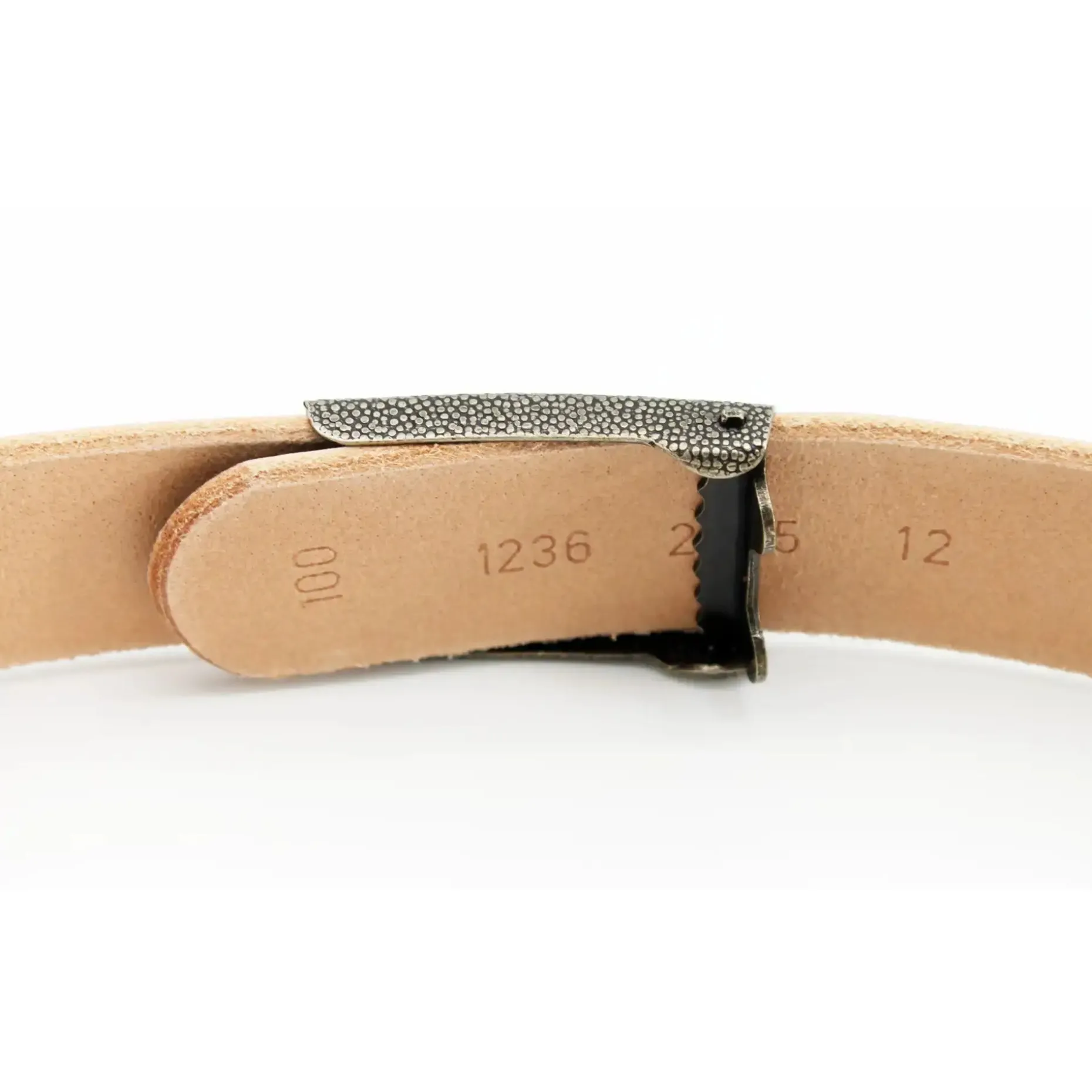 Materialzusammensetzung: Gürtel: 100% Rindsleder, vegetabil gegerbt (chromfrei), Schloss: Metall
