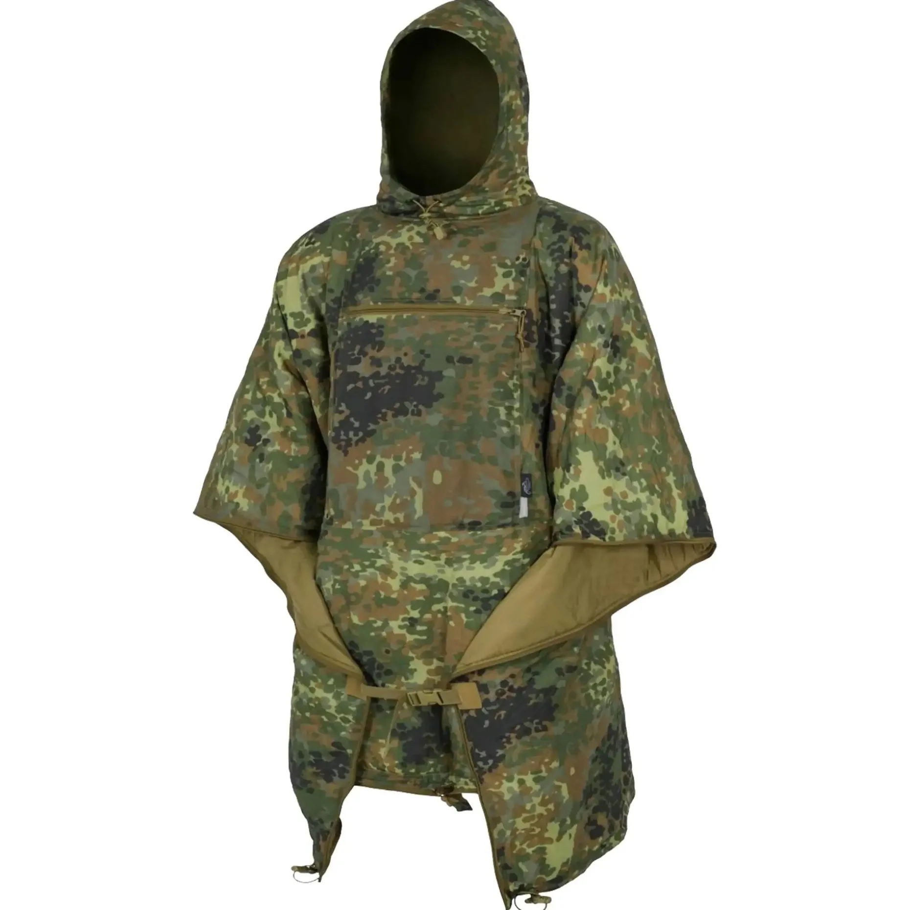 Die durchdachte Konstruktion mit Kapuze, Frontreißverschluss und Druckknöpfen sorgt für optimale Anpassung und Tragekomfort. Das geringe Gewicht und das kleine Packmaß machen ihn zum perfekten Begleiter auf Trekkingtouren, Bushcraft-Abenteuern oder beim Militär-Einsatz.