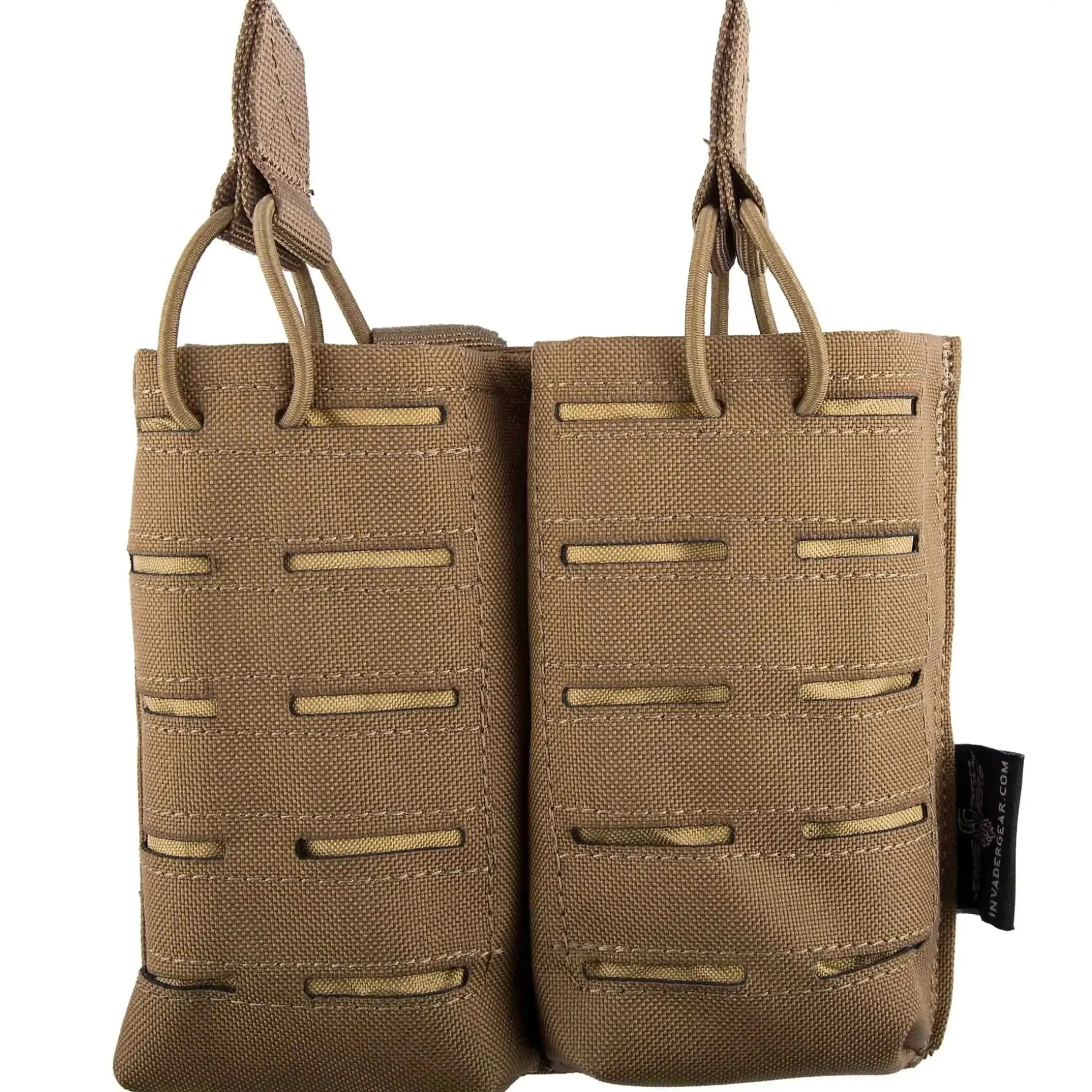 Diese Invader Gear Magazintasche 5.56 Double DA Gen II. ist für alle gängigen Magazine des Kalibers 5.56 mm geeignet. Sie fasst maximal zwei Magazine und sichert diese mithilfe von Bungeeschlingen, die auf der Vorder- und Rückseite befestigt sind. Klassisch über das Molle-System befestigt, hält diese Tasche Deine Magazine in nahezu jeder Situation an den korrekten Positionen und erleichtert den Magazinwechsel. Auf der Vorderseite besteht zudem die Möglichkeit, weitere Molle-Pouches, wie z.B. eine Pistolenmagazintasche, zu befestigen. Das verwendete Material ist extrem widerstandsfähig und hochwertig verarbeitet, was dieses Produkt sehr langlebig macht.