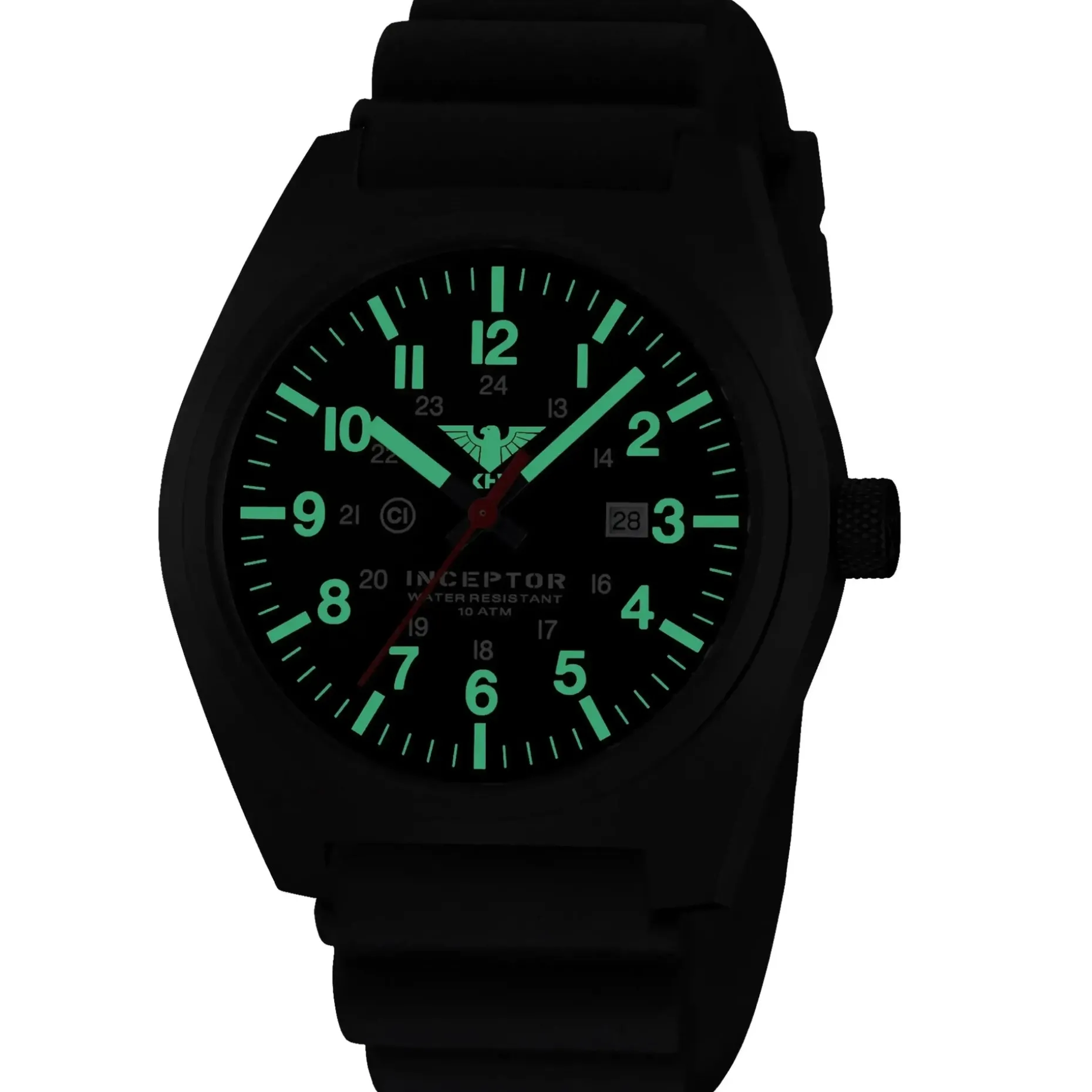Sie ist an der bewährten „GI Basic Field Watch“ nach U.S. Army-Spezifikation MIL-W-46374F für Spezialeinheiten orientiert, welche an US-Soldaten als Teil der Ausrüstung ausgegeben wird. Das C1- beleuchtete Ziffernblatt ist tagsüber und auch nachts gut ablesbar. Auch der KHS-Adler wurde bei dieser Uhr illuminiert und wertet die Uhr nochmals auf.