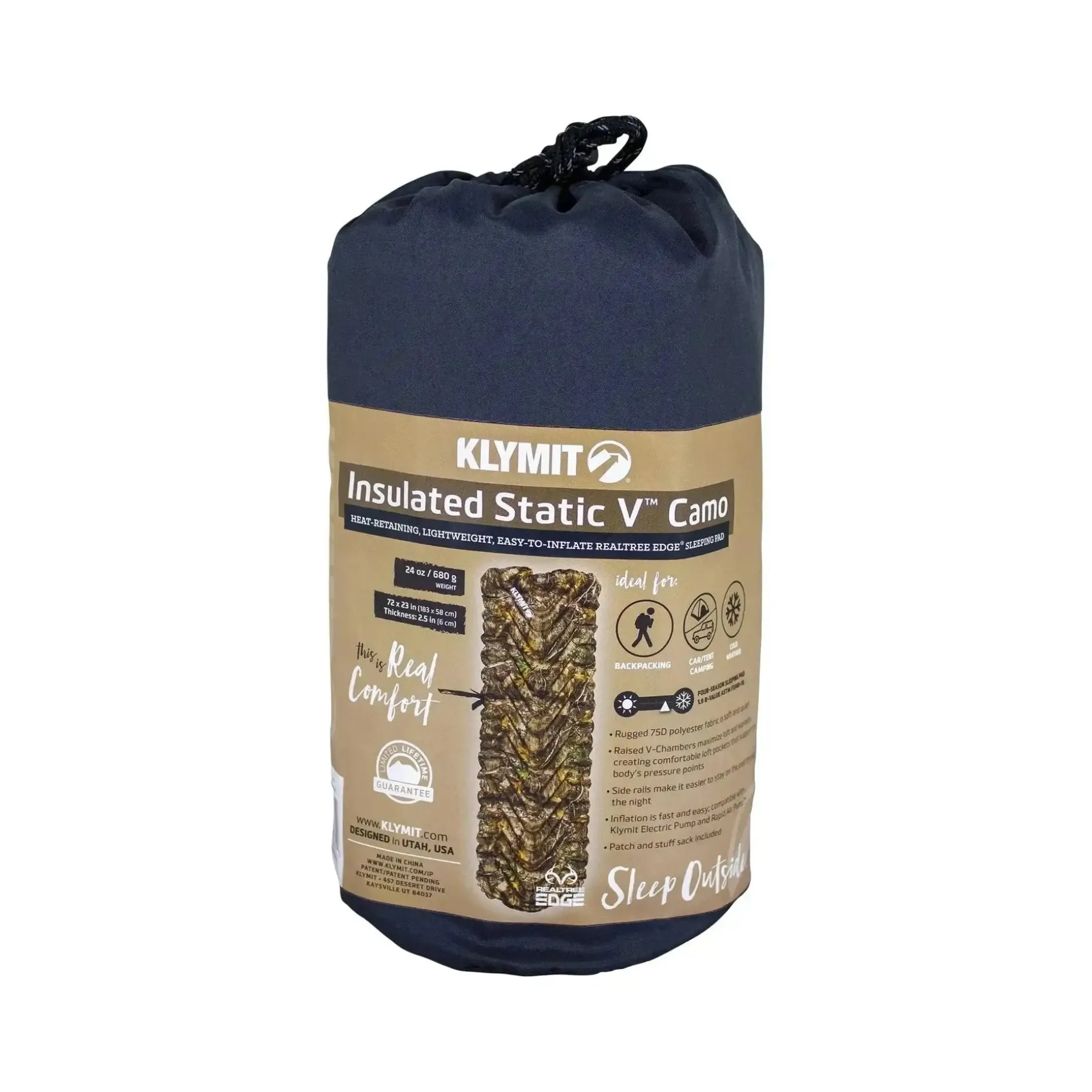 Die Klymit Isomatte Insulated Static V ist eine besonders gut isolierte Schlafunterlage. Dank Klymalite Isolierung kannst Du auch bei kälteren Temperaturen gut schlafen. Die leichte, langlebige und komprimierbare Isolierung ist in den einzelnen Kammern so aufgebaut, dass der Luftaustausch zwischen oberer und unterer Hälfte der isomatte verlangsamt wird. Dadurch verbessert sich die Wärmeleistung. Mit der patentierten V-förmigen Gestaltung der Body Mapping Technologie ist die Isomatte besonders komfortabel für alle Schlafpositionen. Die Side Rails sorgen für einen sicheren Schlaf, da Du mittig liegst und Luftbewegungen während des Hin- und Herdrehens verhindert wird. Durch das Deep Weld Patterning kann sich Dein Schlafsack voll ausbreiten und so die höchstmögliche Isolationswirkung bieten. Das eingebaute Flip Ventil ist ein flaches und besonders einfach zu bedienendes Ventil. Du kannst es mit der Electric Pump oder der Rapid Air Pump aufblasen.