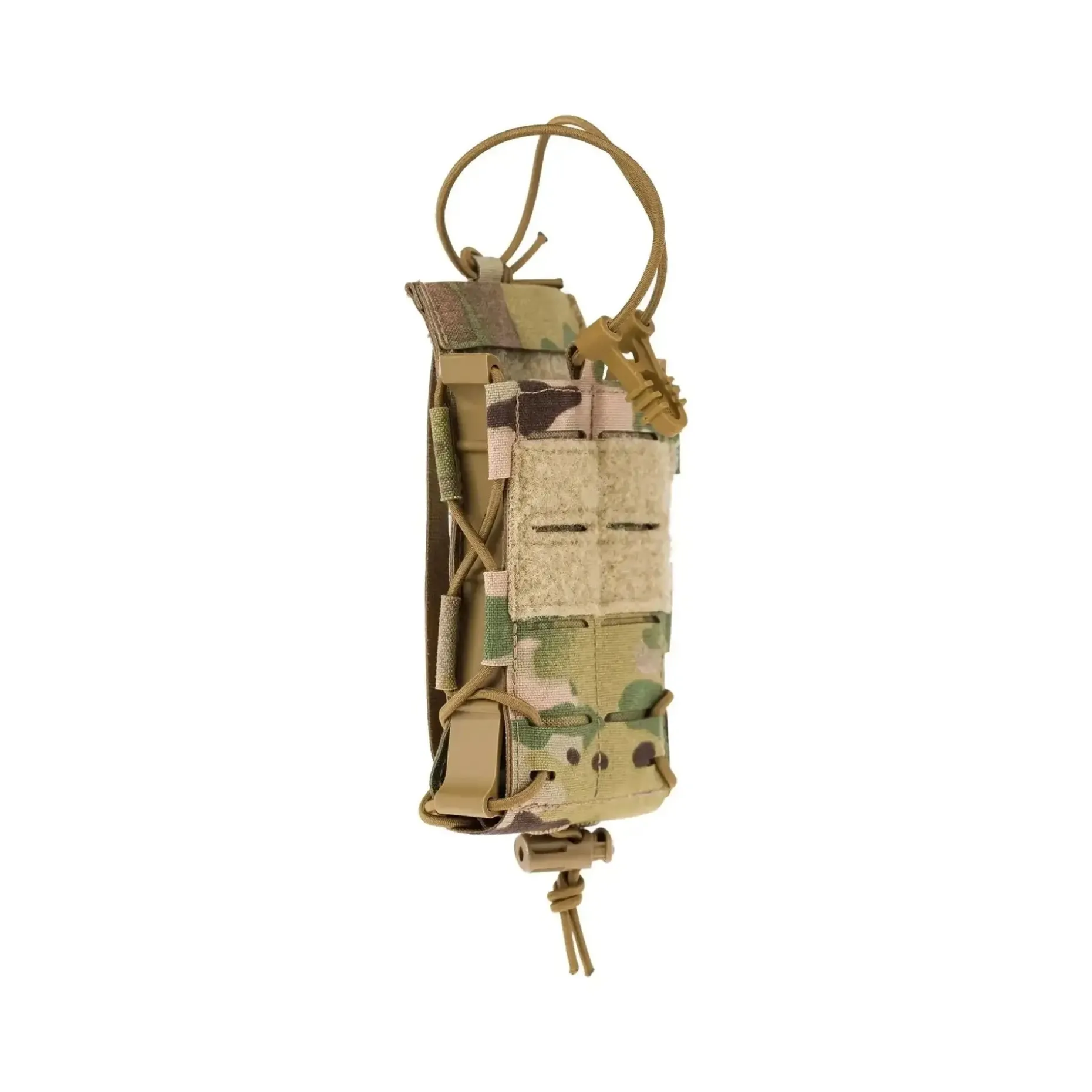 Die Befestigung erfolgt ganz einfach über Molle/PALS, sodass Du die Tasche flexibel an Deiner Ausrüstung befestigen kannst. Das innovative L-Bügel-Design in Kombination mit der einstellbaren Schnürung ermöglicht es Dir außerdem, die Seiten und den Boden der Tasche frei zu bewegen.
