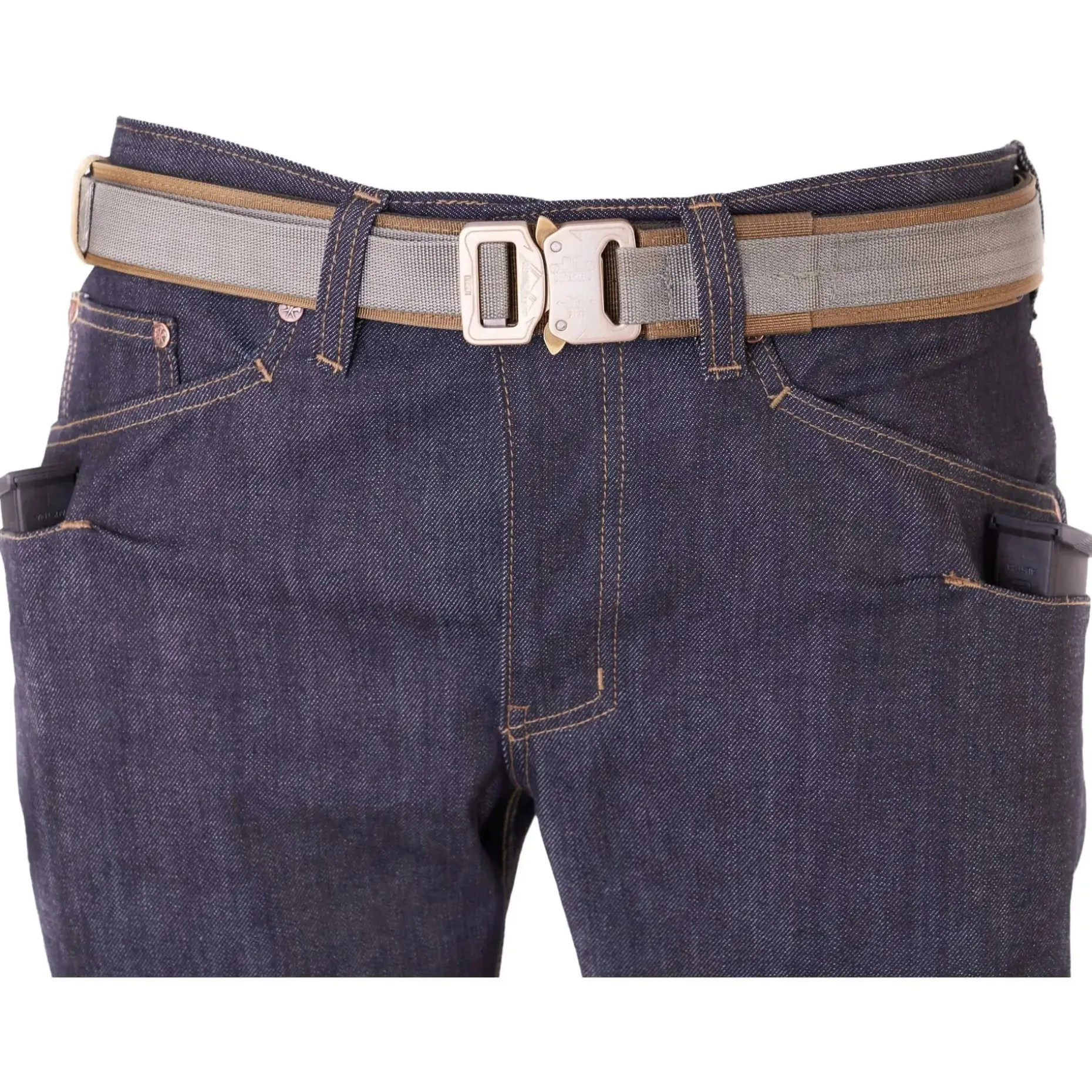– Zwei zusätzliche Fronttaschen unterhalb der normalen Pockets, in welche je Seite bis zu zwei Glock 17 Magazine, ein Handy oder eine Taschenlampe passt – für unauffälliges Tragen.