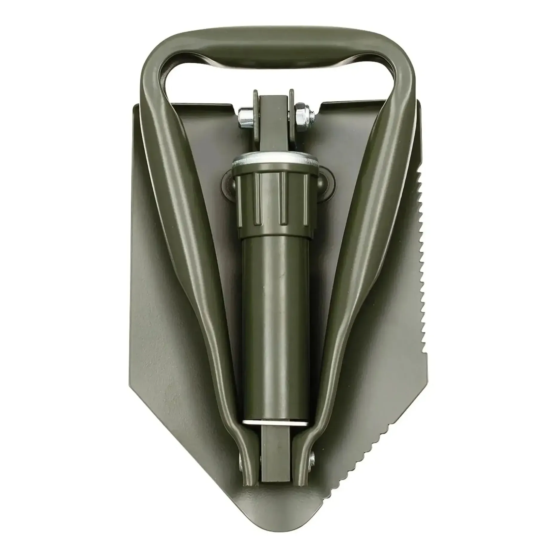 Der Klappspaten hat eine einseitige Sägezahnung und Trittkante, die für zusätzliche Sicherheit beim Graben sorgt. Dank des Drehverschlusses kannst Du den Spaten zusammenklappen, um das Packmaß zu minimieren und ihn mühelos transportieren zu können. Zudem wird er mit einer Spatentasche geliefert, die mit einer Koppelbefestigung ausgestattet ist.
