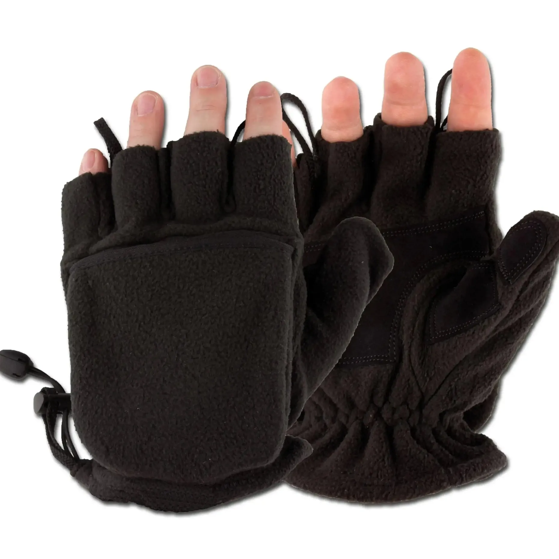 Tauche ein in die Welt der MFH Fleecehandschuhe schwarz! Die Handschuhe sind nicht nur stylisch, sondern auch äußerst funktional. Mit einer umklappbaren Fingerkappe mit Klettverschluss bieten sie Dir maximale Flexibilität und Bewegungsfreiheit. Der Besatz an Handinnenfläche und Daumenbereich sorgt für einen sicheren Griff, egal, was Du gerade machst. Durch den elastischen Tunnelzug mit Kordelstopper am Handgelenk sitzen die Handschuhe perfekt und halten Dich warm und geschützt.
