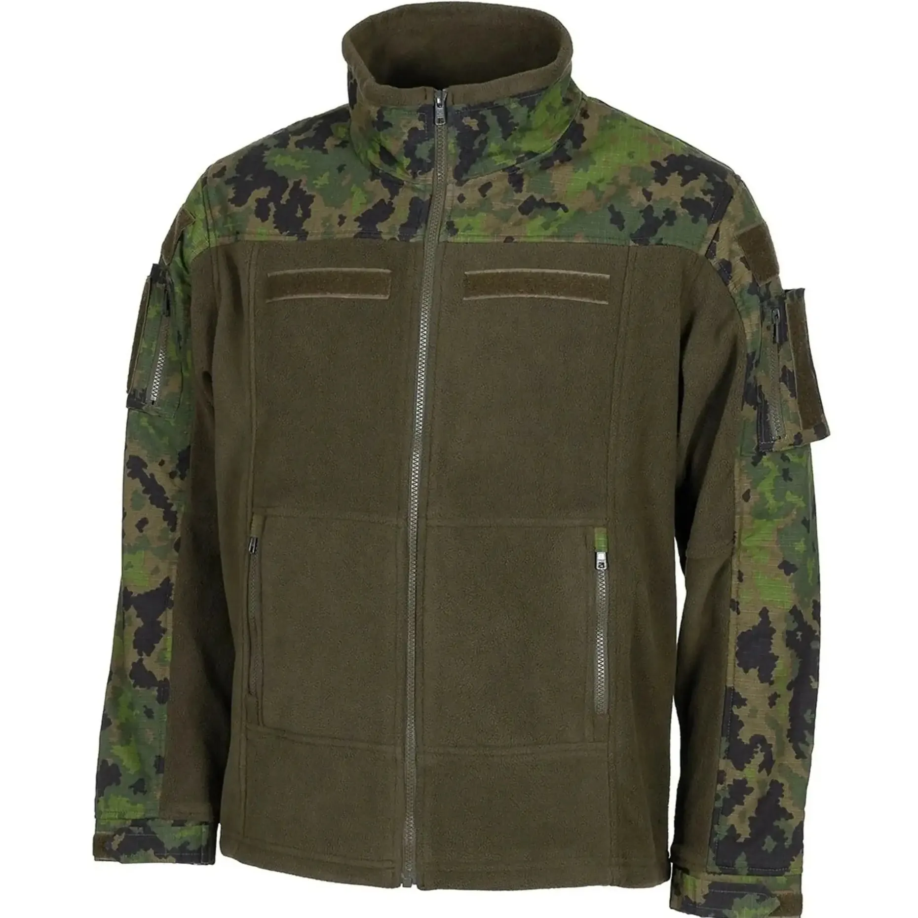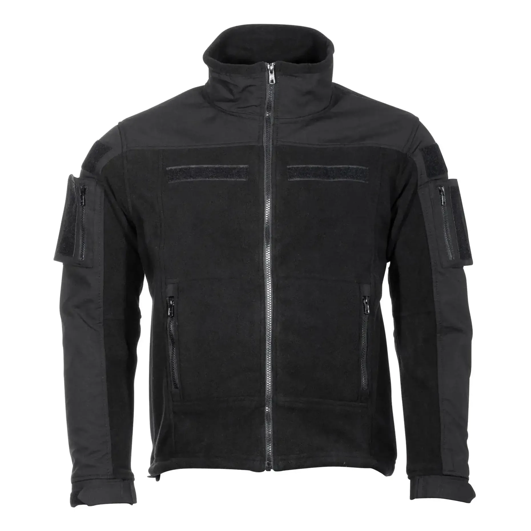 Diese robuste MFH Fleecejacke Combat verfügt über zwei vertikale Reißverschluss-Hüfttaschen, zwei aufgesetzte Ärmeltaschen mit Reißverschluss und Klettfläche für Patches oder Abzeichen. Auch auf Oberarm, Brust und im Nacken sind Klettflächen zum Anbringen von Namensbändern etc.