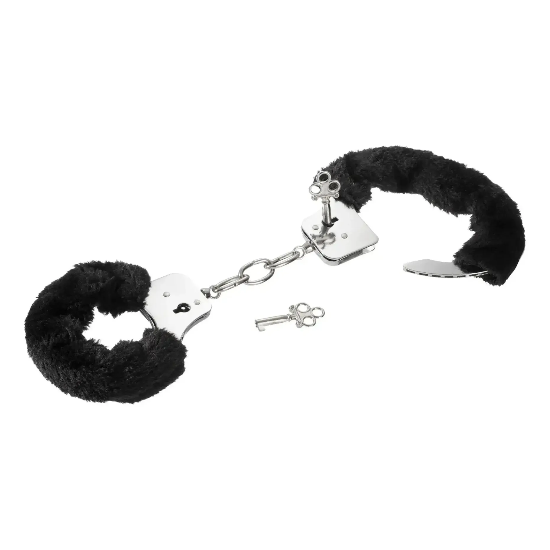 Einfache, preiswerte Handfesseln mit einem Plüschüberzug aus Polyester.