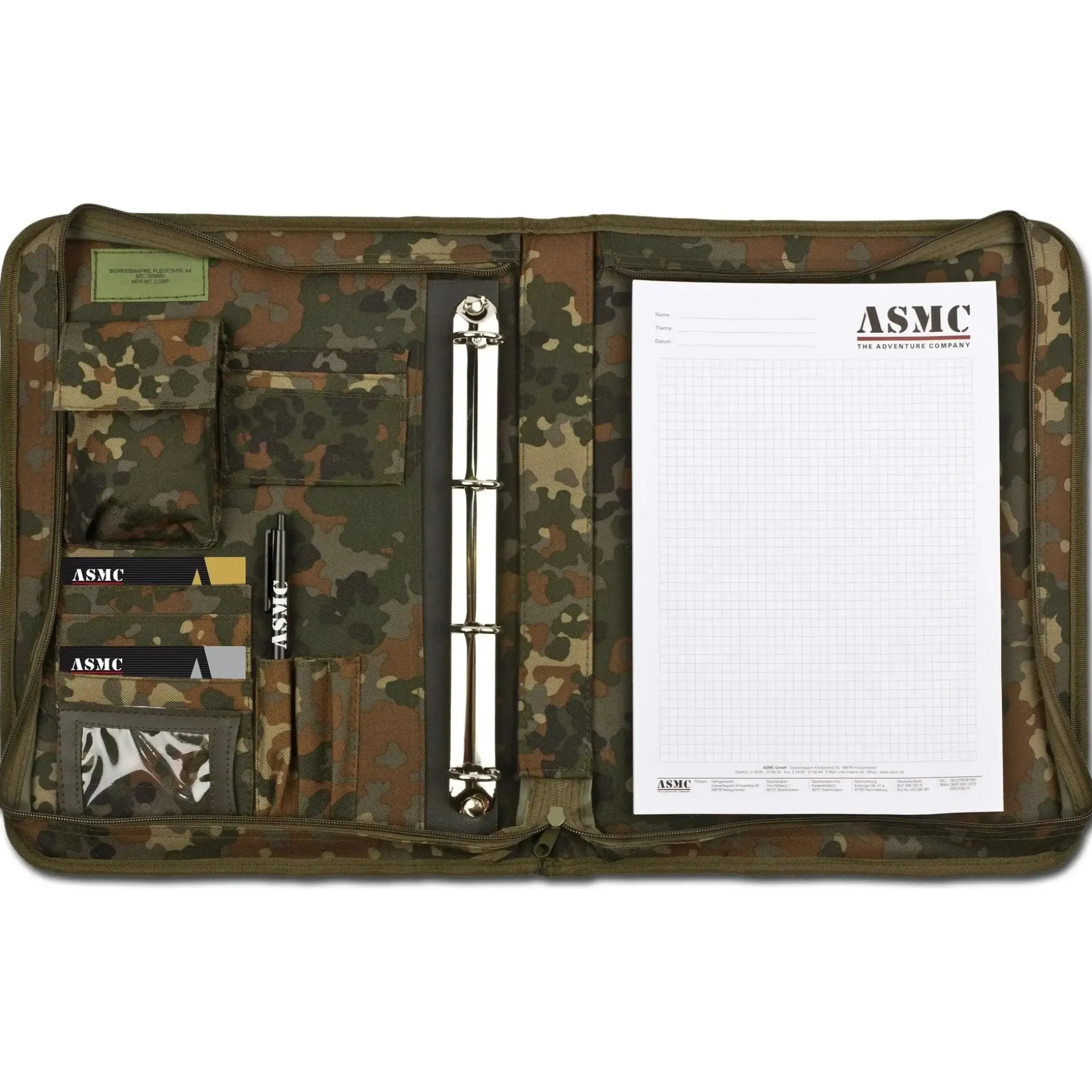 Die MFH Schreibmappe ermöglicht Dir das organisierte Verstauen Deiner Unterlagen. Sie ist ausgestattet mit einer Elastikkordel und einem Netzfach mit Reißverschluss und Klettflauschpatch (ca. 9 x 2,5 cm) vorne. Außerdem ist sie komplett aufklappbar und in folgende Fächer unterteilt: