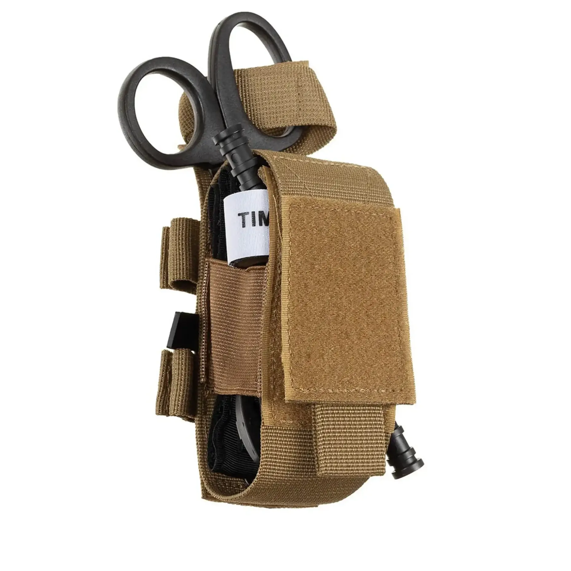 Die Rückseite ist mit einer Molle-Befestigungsschlaufe sowie zwei Schlaufen mit Druckknöpfen ausgestattet, wodurch sich die Tasche vertikal oder horizontal an Gürtel, Rucksack oder Tragesystemen befestigen lässt. Ideal für Einsatzkräfte, Outdoor-Aktivitäten oder EDC-Ausrüstung.