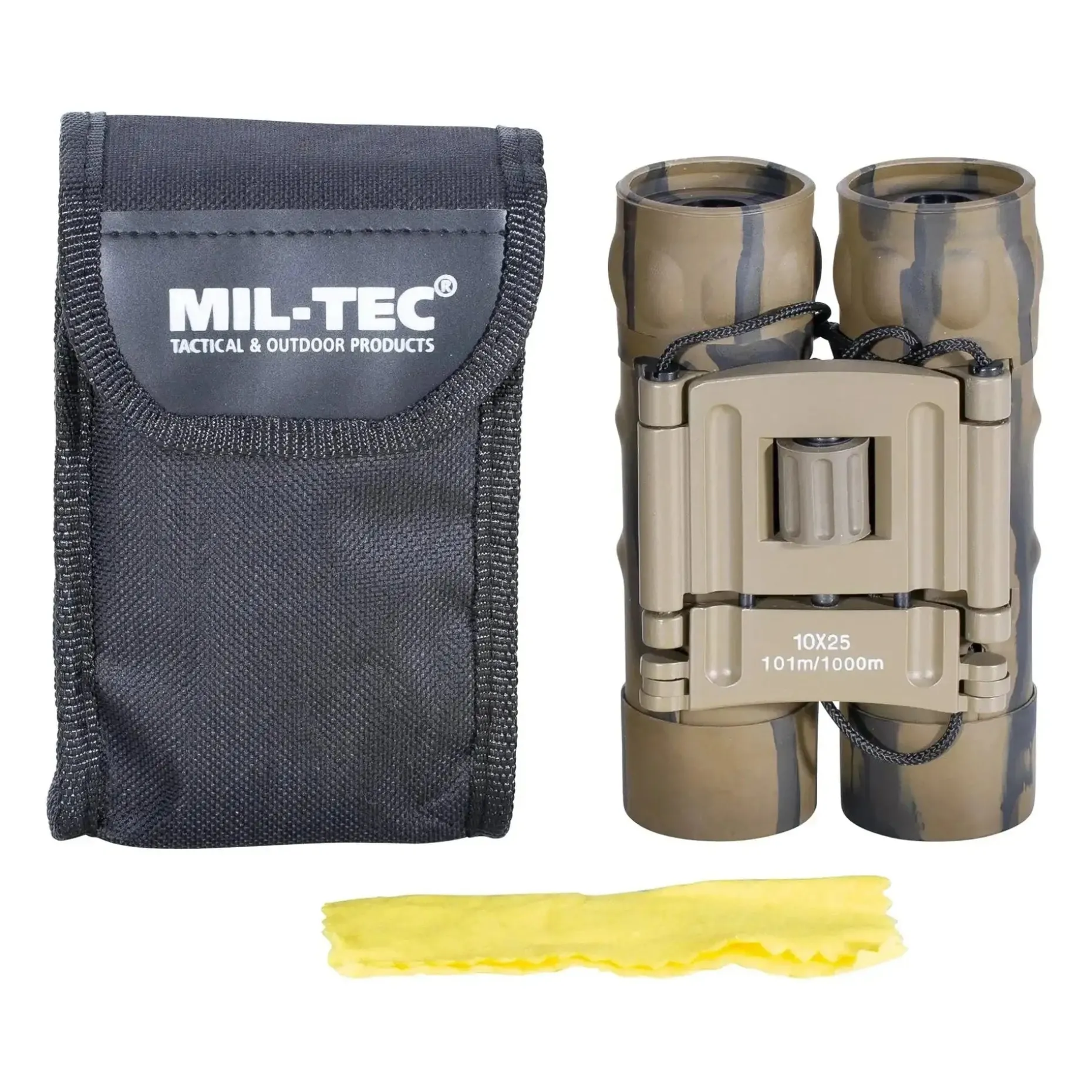 Das Mil-Tec Fernglas Faltbar Gen. II 10×25 bietet eine zehnfache Vergrößerung und ein Sehfeld von 101 m / 1000 m. Die Dioptrienfeineinstellung erleichtert die Nutzung des Tools.