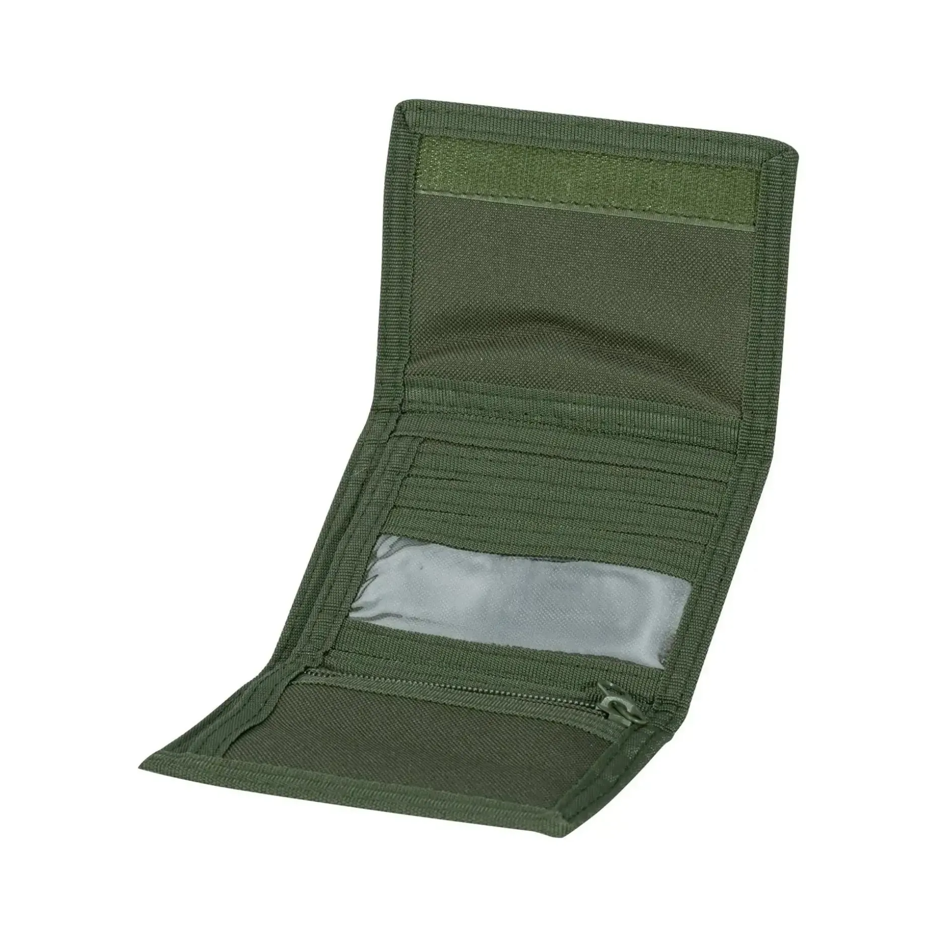 3-fach faltbare Geldbörse mit Geldscheinfach, Münzfach mit Reißverschluss und 3 Fächern (1 Klarsichtfach) für Kreditkarten, Ausweise etc. Schließt mittels Klettverschluss.