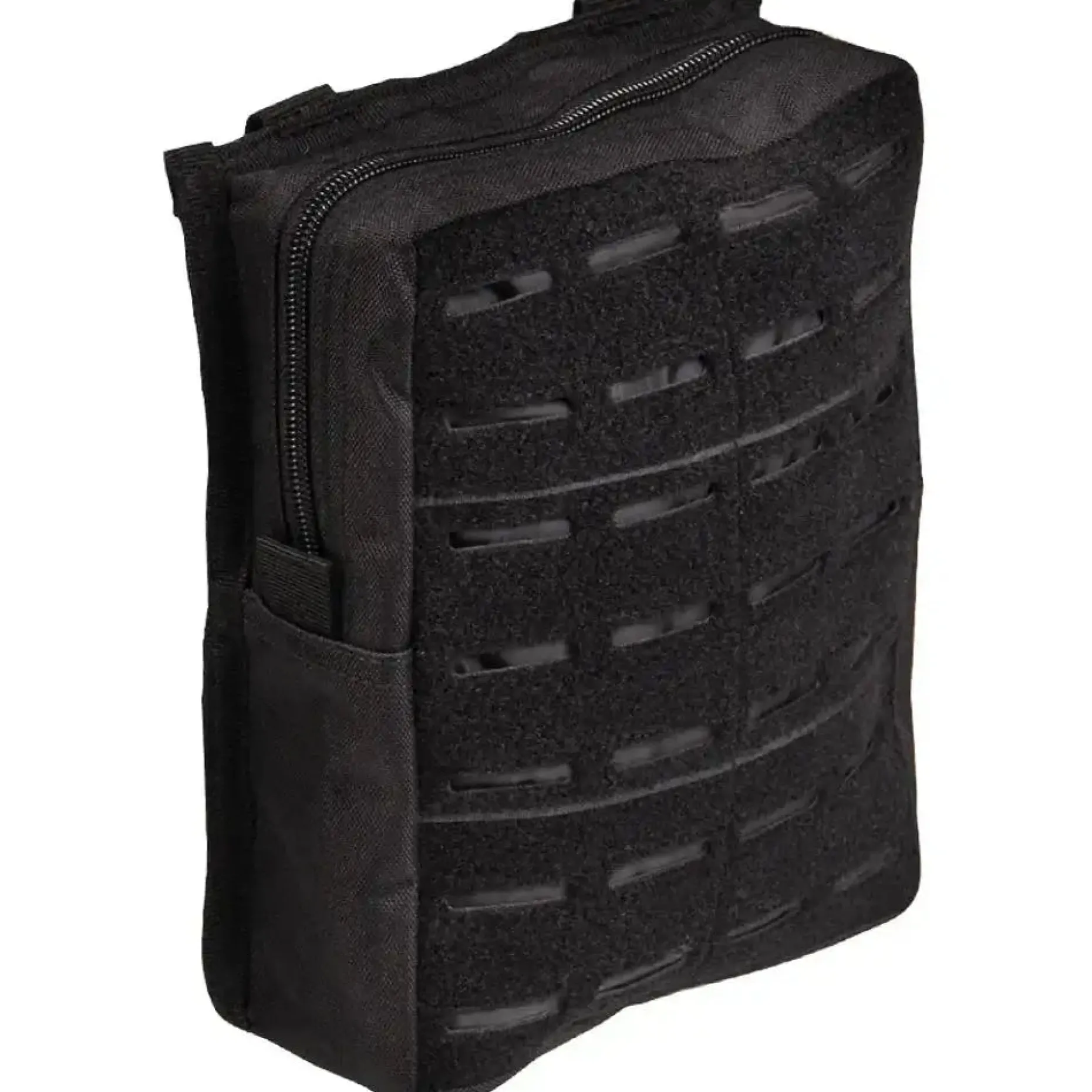 Vertikale Gürteltasche, die dank Druckknopf-System auf der Rückseite an unterschiedlicher Ausrüstung befestigt werden kann. Die Laser Cut-Front ermöglicht das Anbringen zusätzlicher Ausrüstung. Weiterhin können auf den Klettflausch Patches, Namensbänder und Abzeichen aufgeklettet werden. Der 2-Wege-Reißverschluss ermöglicht das leichte Öffnen und Schließen der Tasche. Mit Ablauföse.