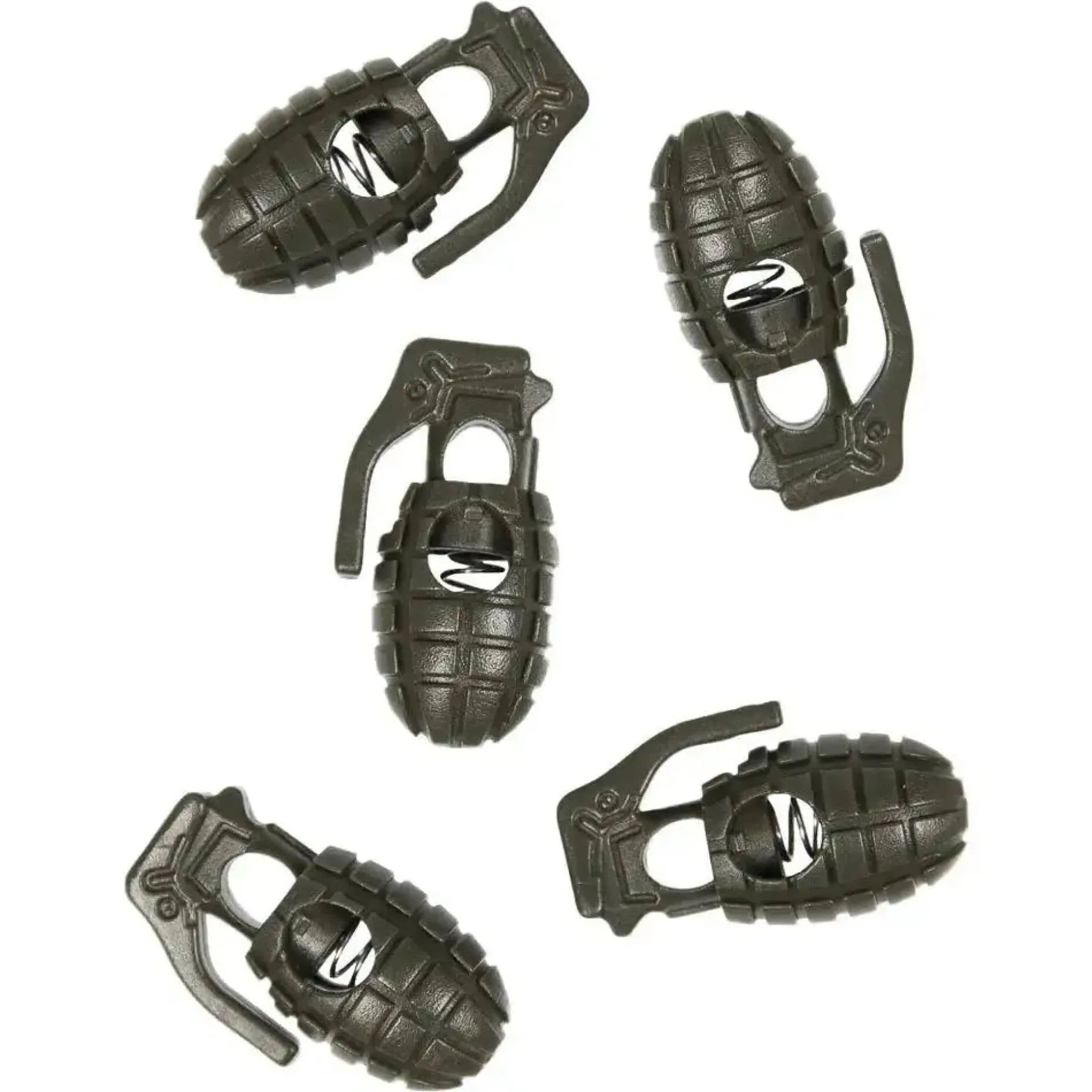 Mit den Kordelstoppern in Handgranaten-Form lässt sich jedes Outfit umstylen. Sie lassen sich schnell und einfach an Kordeln anbringen, sei es an Rucksack, Jacke, Pullover oder Ausrüstung. Mit Metallfeder. Ersatz-Set mit 10 Stoppern.