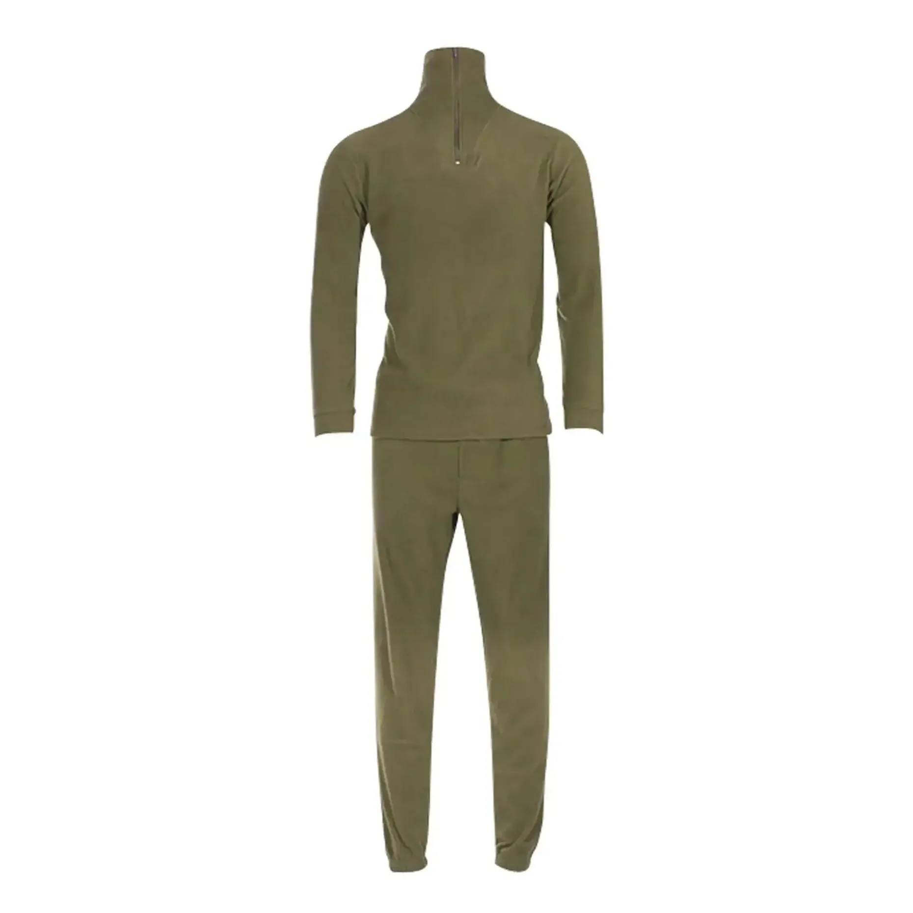 Das Mil-Tec Unterwäscheset Thermofleece oliv besteht aus einem Langarm-Unterhemd mit Reißverschluss-Rollkragen und einer langen Unterhose mit Eingriff. Das flauschig weiche Thermofleecematerial trägt sich angenehm auf der Haut und sorgt für wohlige Wärme.