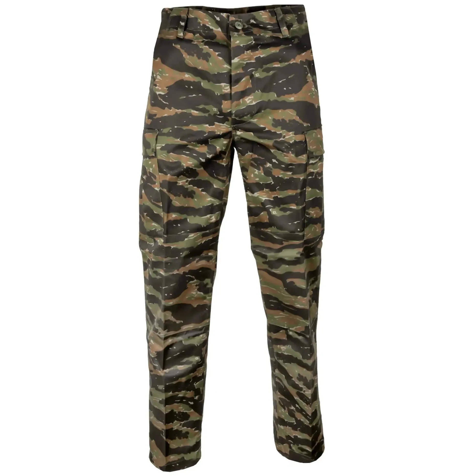 Die Mil-Tec US Feldhose Typ BDU ist eine strapazierfähige Nachbildung der klassischen US-BDU-Feldhose, gefertigt aus robustem Mischgewebe (65 % Polyester, 35 % Baumwolle, Durchschnittsgewicht 230–245 g/qm) für lange Haltbarkeit und hohen Tragekomfort. Besonders beanspruchte Bereiche wie Knie und Gesäß sind mit doppelten Stofflagen verstärkt, um maximale Widerstandsfähigkeit zu gewährleisten. Der Eingriff mit verdeckter Knopfleiste, die verstellbare Bundweite und Beinabschlüsse mit Zugband sorgen für optimalen Sitz und individuelle Anpassung. Die praktische Taschenaufteilung umfasst zwei seitliche Einschubtaschen, zwei große aufgesetzte Cargotaschen an den Beinen sowie zwei Gesäßtaschen mit Patte und Knopfverschluss, die ausreichend Stauraum bieten. Das Ripstop-Gewebe verhindert unkontrolliertes Aufreißen, wodurch die Hose besonders langlebig ist. Gerade geschnitten und funktional ausgestattet, eignet sie sich ideal für Outdoor-Aktivitäten und anspruchsvolle Einsätze.