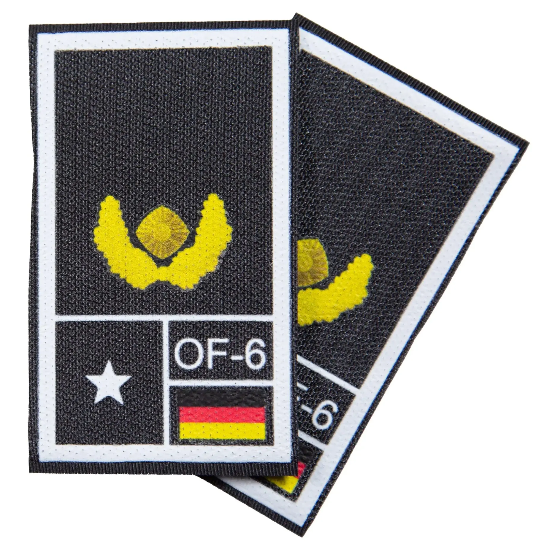 Auf der Rückseite befindet Klett zum einfachen Anbringen. Die klaren, langlebigen Drucke sorgen dafür, dass Deine Rangabzeichen auch unter extremen Bedingungen gut lesbar bleiben. Dank der einfachen Handhabung kannst Du sie schnell und unkompliziert anbringen oder abnehmen. Hergestellt in Deutschland.