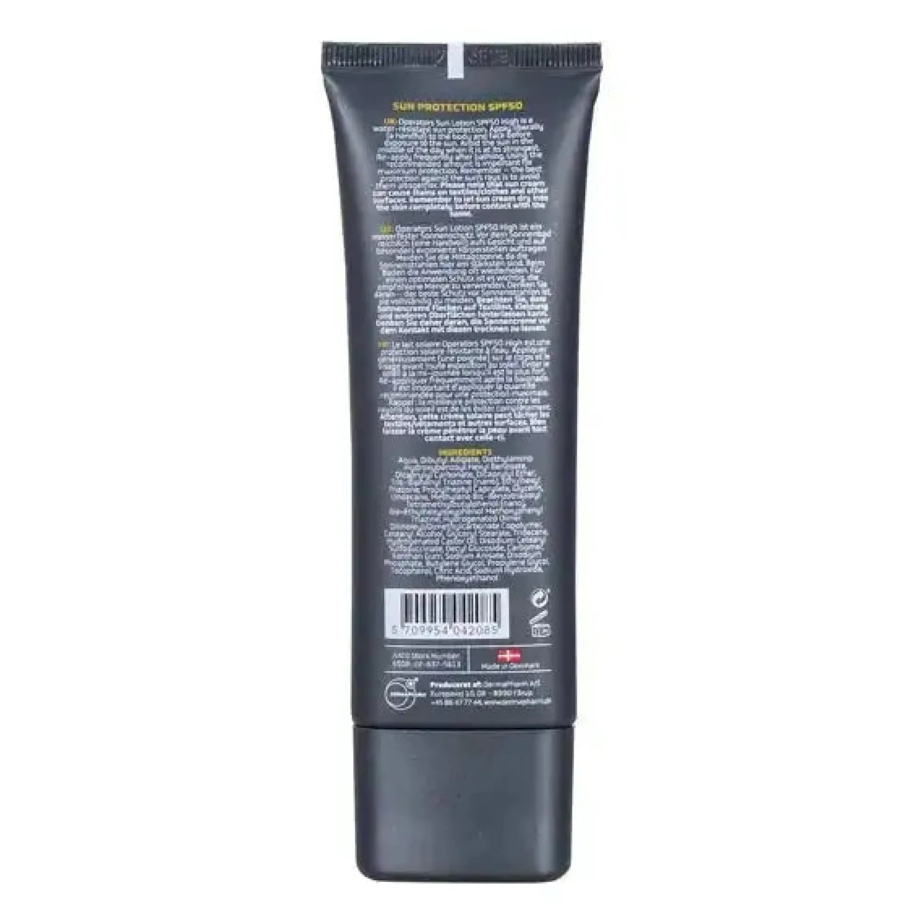 Zutaten: Aqua, Octocrylene, Ethylhexyl Salicylate, Butyl Methoxydibenzoylmethan, C12-15 Alkyl Benzoate, Dicaprylyl Carbonate, Tris-Biphenyl Triazine (nano), Glycerin, Undecane, Tridecane, Bis-Ethylhexyloxyphenol Methoxyphenyl Triazine, Methylene Bis-Benzotriazolyl Tetramethylbutyphenol (nano), Natriumpolyacrylat, Decylglucosid, Tocopherylacetat, Dinatriumcetearylsulfosuccinat, Natriumlevulinat, Xanthangummi, Sorbinsäure, Polyglycerin-3-caprat, Dinatriumphosphat, Butylenglykol, Propylenglykol, Tocopherol, Phenoxyethanol, Kaliumsorbat.