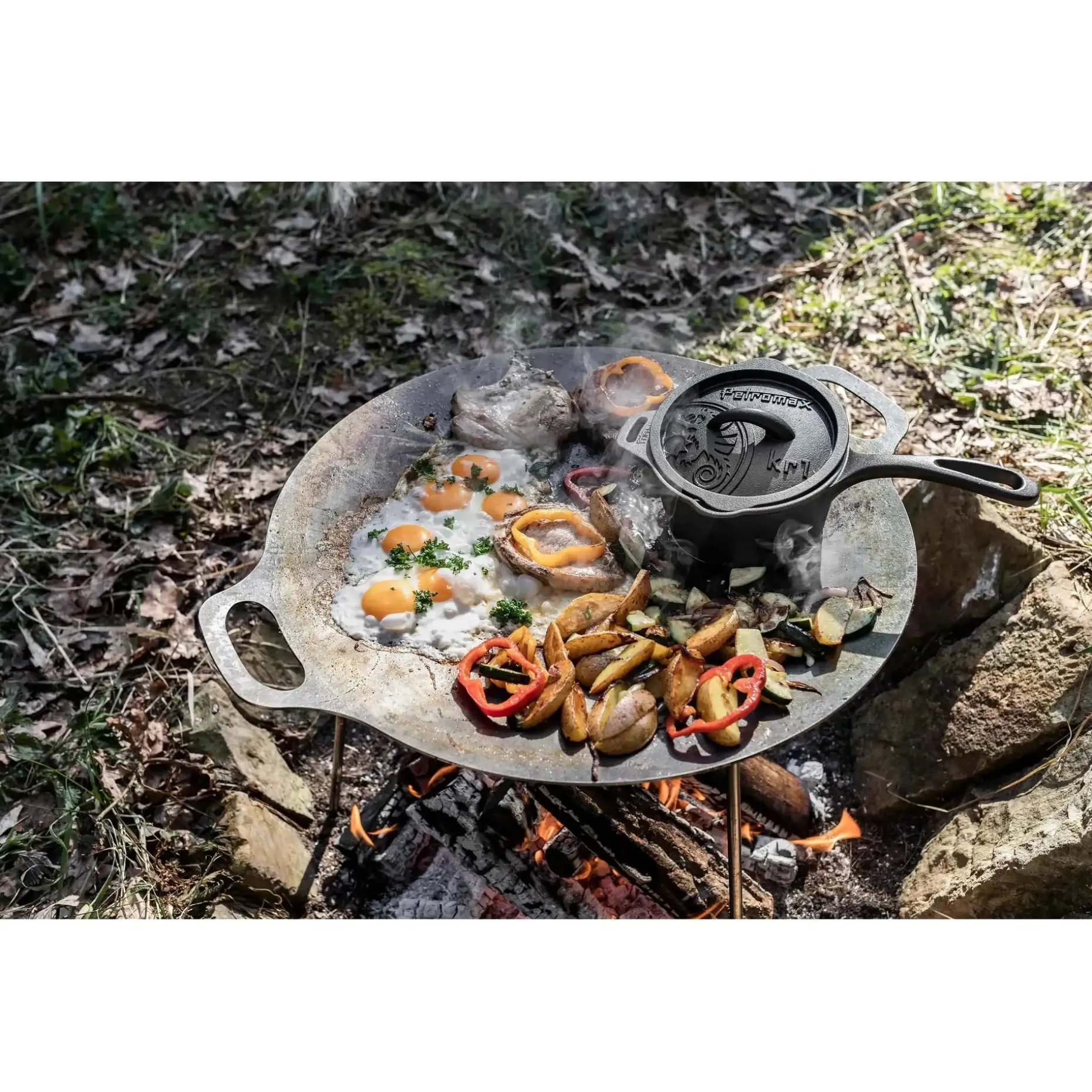 In der Petromax Kasserolle kr1 Gusseisen mit Deckel gelingen Dir geschmorte oder gegarte Gerichte, Eintöpfe und klassische Soßen. Durch den eben Boden und den Griff ist das Hantieren über dem Feuer oder Herd einfach. Gusseisen ist ein hochwertiges Material, das Wärme lange speichert und gleichmäßig verteilt. Der natürliche Antihaft-Effekt verbessert sich bei jedem Bratvorgang, da sich eine Schutzschicht bildet. Das charakteristische Geschmackserlebnis wird durch ein spezielles Aroma-Profil in der Deckelwölbung verstärkt. Seitliche Ausgießhilfen ermöglichen Dir ein punktgenaues Servieren von Soßen und erleichtern das Abgießen von Kochwasser.