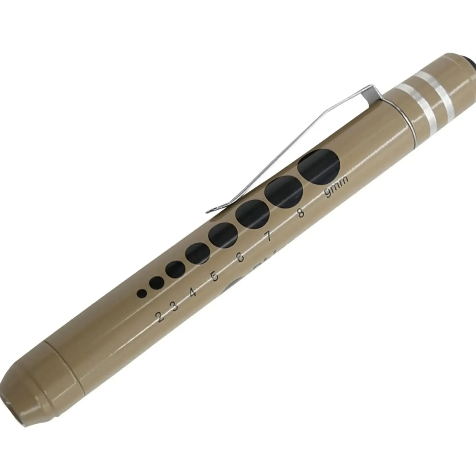 Das Penlight besitzt einen praktischen Halteclip, mit dem Du es an Deiner Tasche oder Ausrüstung befestigen kannst. Zusätzliche Features wie die eingebaute Pupillenlehre und ein 5-cm-Lineal ermöglichen Dir präzise Messungen der Pupillenerweiterung und Länge. Die Leuchte wird mit 2 AAA-Batterien betrieben (nicht im Lieferumfang enthalten) und ist so immer einsatzbereit, wenn Du sie benötigst.