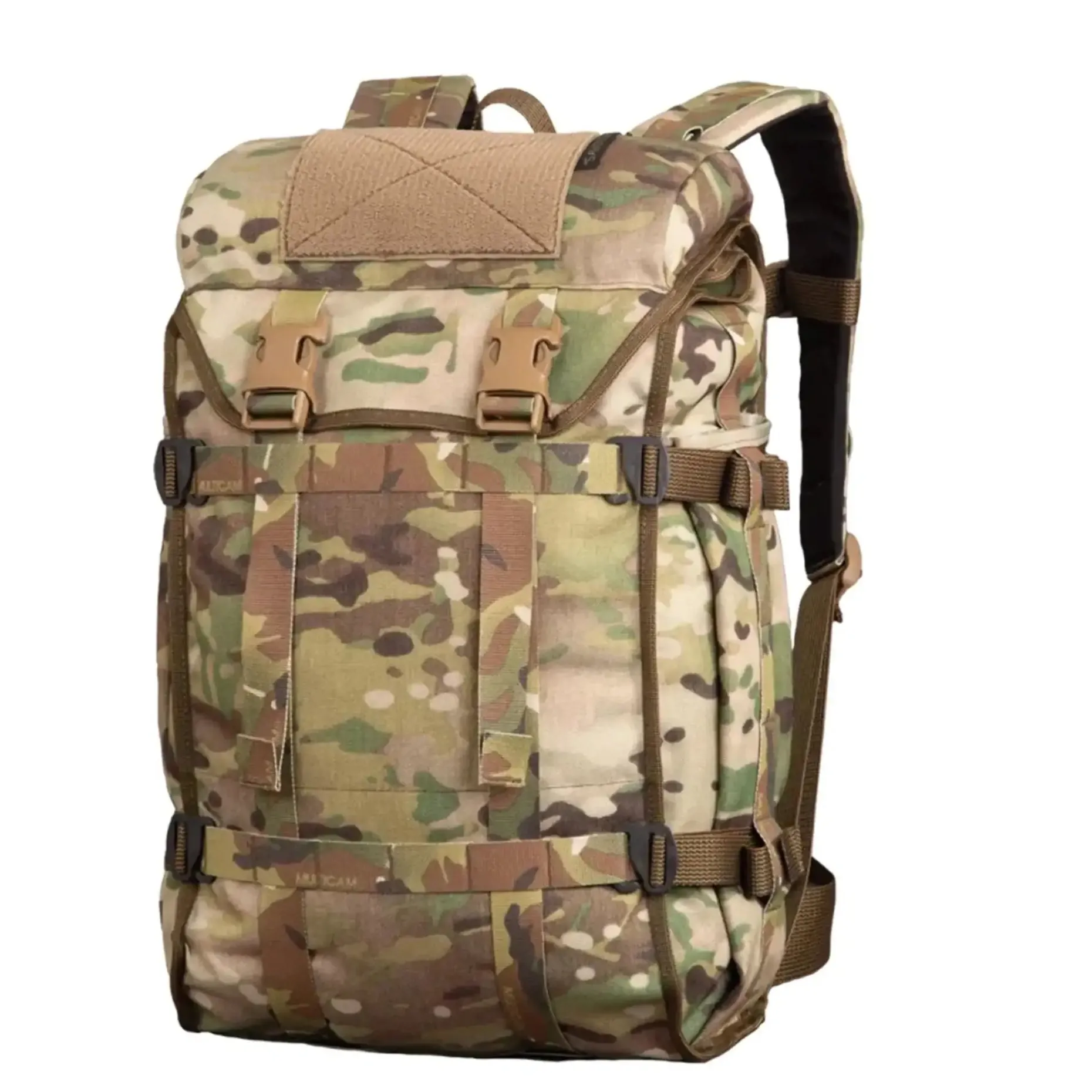 Das Hauptfach ist mit einem zuverlässigen Rolltop-Verschluss ausgestattet, der selbst bei extremen Wetterbedingungen wie Schnee oder Sand einfach zu handhaben ist. Zwei äußere Reißverschlusstaschen erleichtern den Zugriff auf kleine Ausrüstungsteile, während das Trinkblasenfach und zahlreiche PALS-Bänder die Vielseitigkeit erhöhen. Ein besonderes Highlight ist der 50-mm-Hüftgurt, der für zusätzliche Stabilität sorgt, aber bei Bedarf im Rückenfach verstaut werden kann.