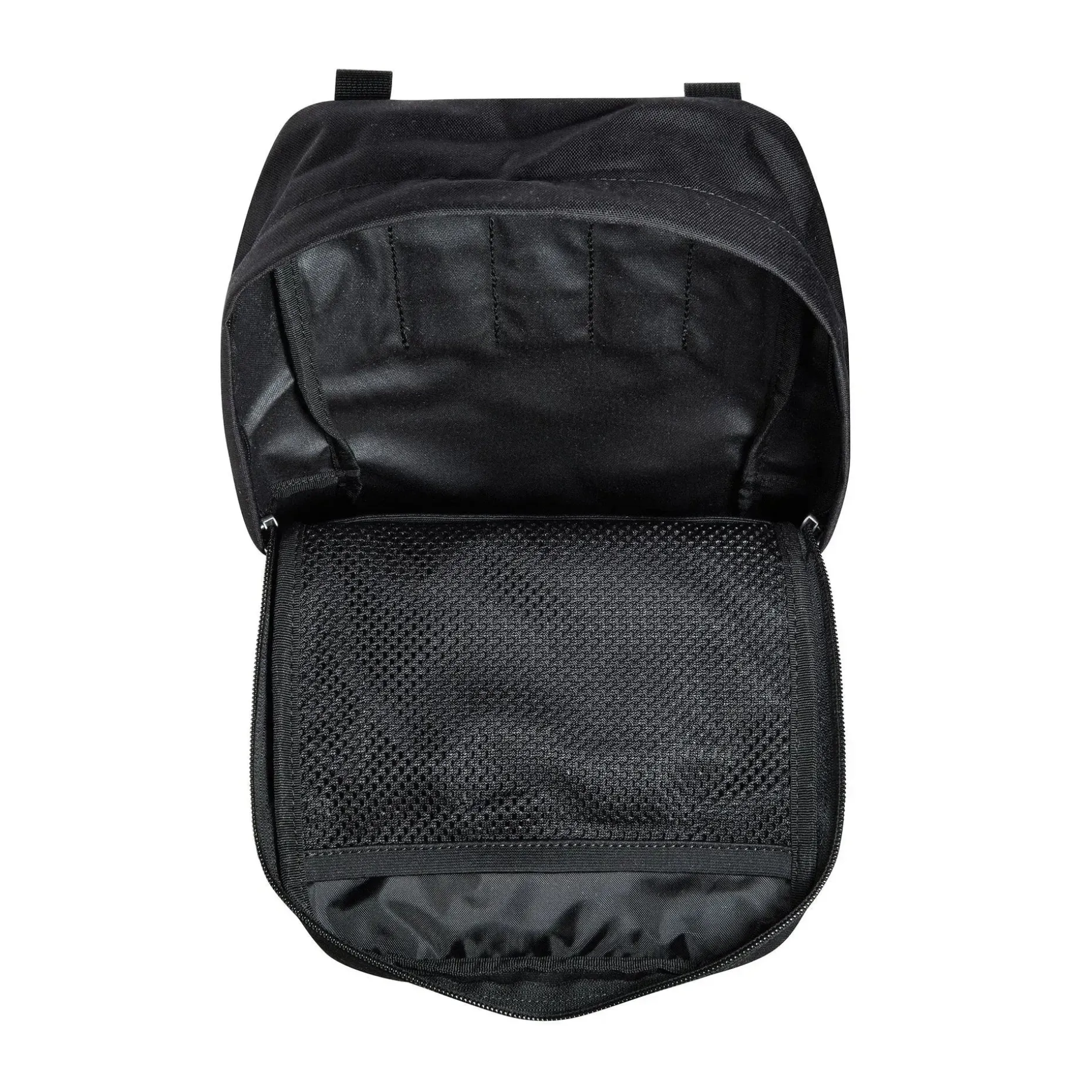 Die D-Ringe ermöglichen die optionale Befestigung eines Trageriemens (nicht im Lieferumfang enthalten), während die Materialschlaufen auf der Front zusätzliche Anbringungsmöglichkeiten bieten. Eine Flauschklett-Fläche (10 x 5 cm) erlaubt das Anbringen von Patches. Innen befindet sich eine Netz-Einstecktasche für kleinere Gegenstände sowie ein herausnehmbarer Signal-Patch für erhöhte Sichtbarkeit.