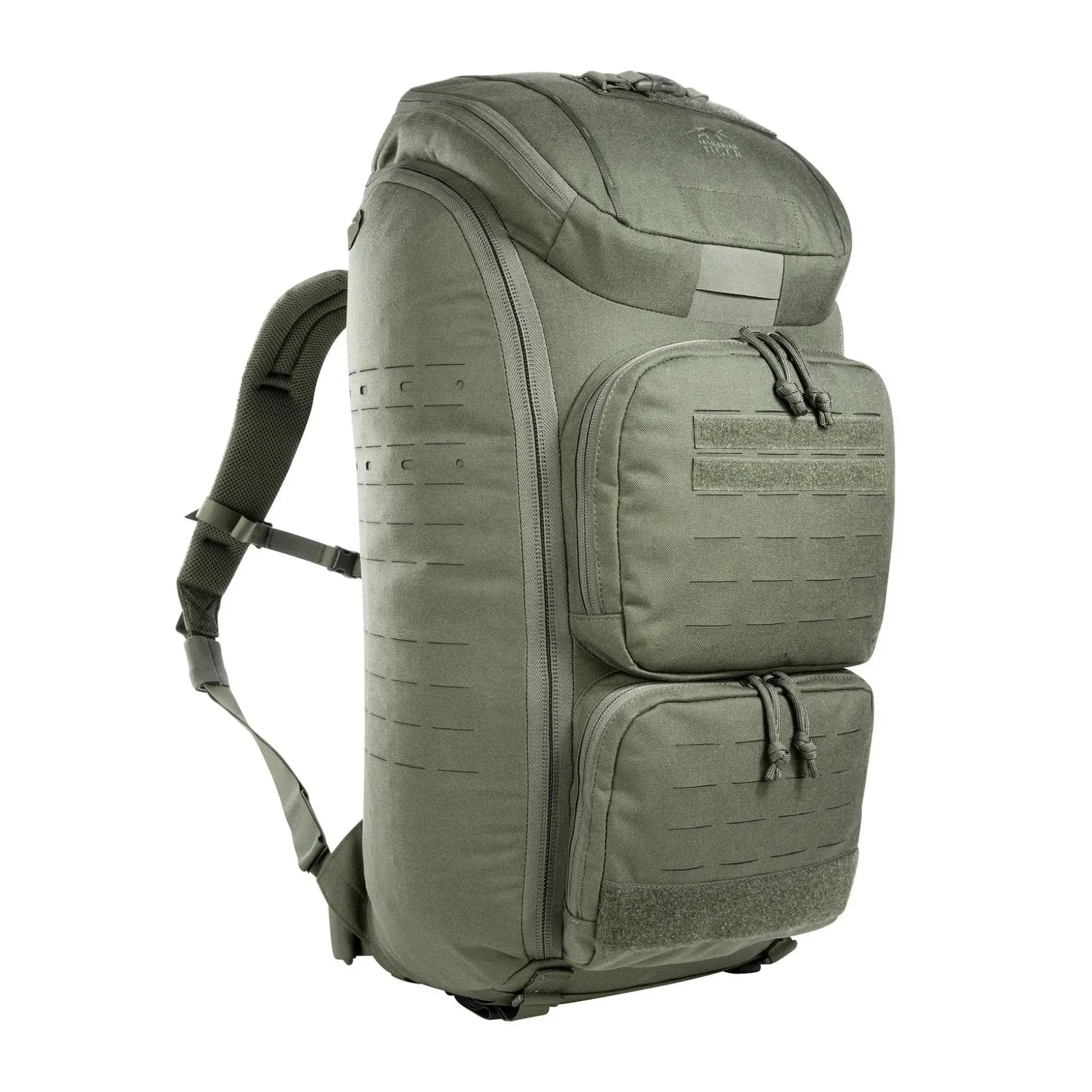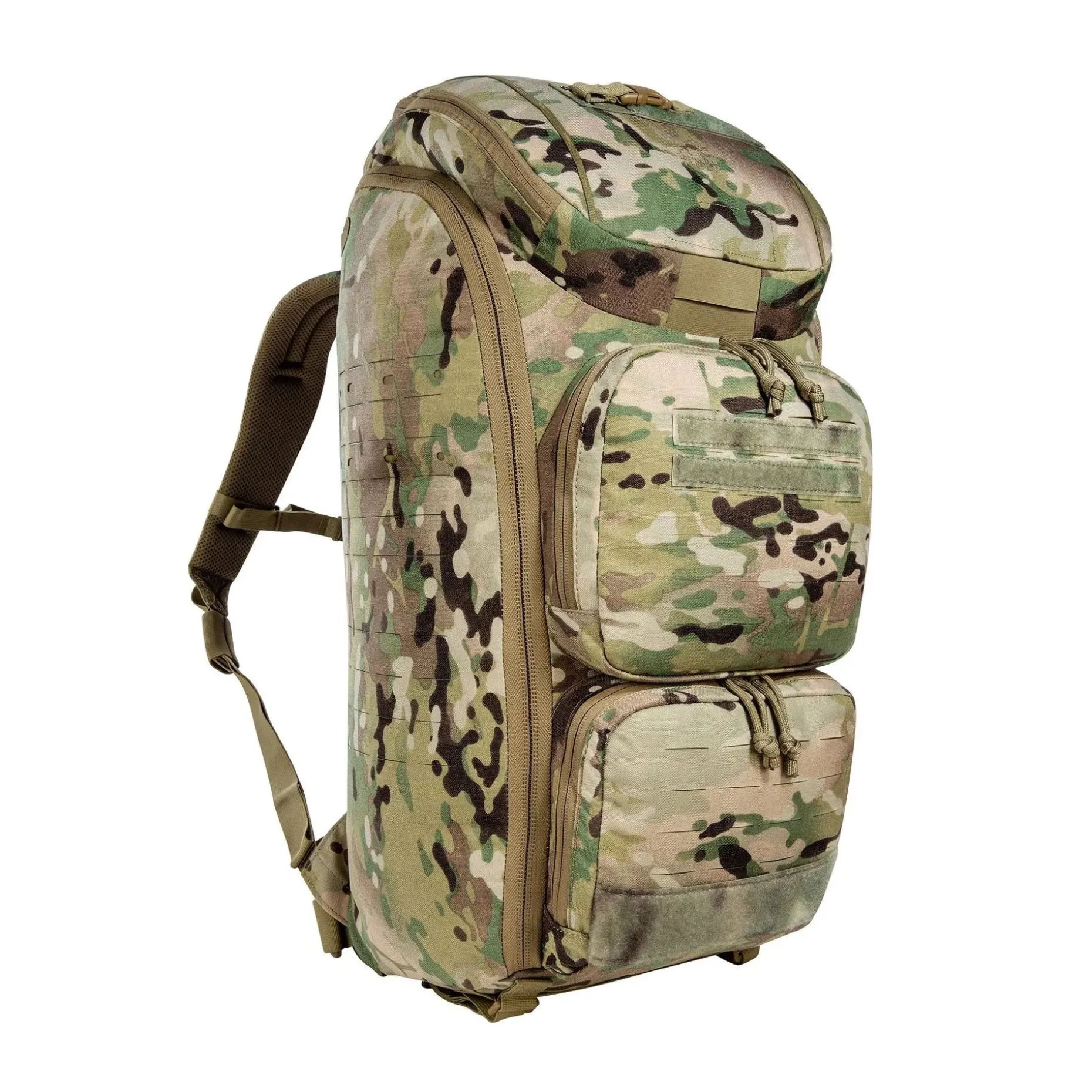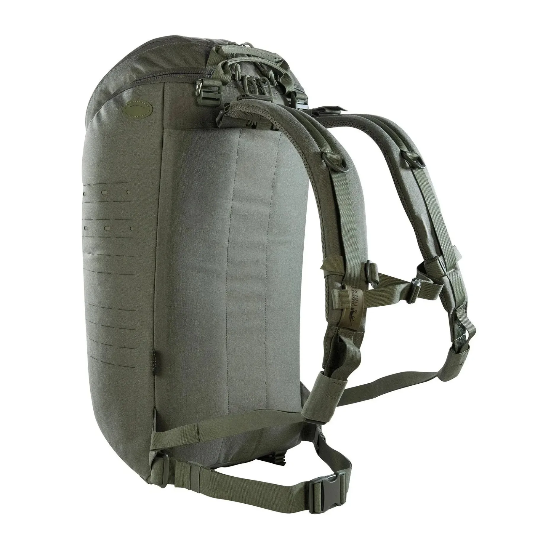 Der abnehmbare Hüftgurt sorgt für zusätzliche Stabilität beim Tragen, und die mitgelieferten Adapterbänder ermöglichen das Einschlaufen des Rucksacks an Schutzwesten. Für noch mehr Anpassungsfähigkeit sorgt das Lasercut-MOLLE-System auf Front und Seiten, das Dir erlaubt, weiteres Zubehör anzubringen. Der große Henkelgriff ermöglicht das Tragen in geöffnetem Zustand, ideal für schnellen Zugriff.