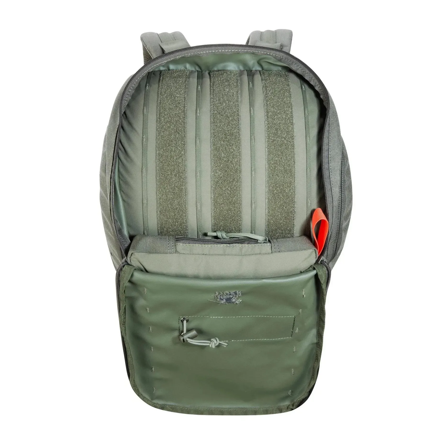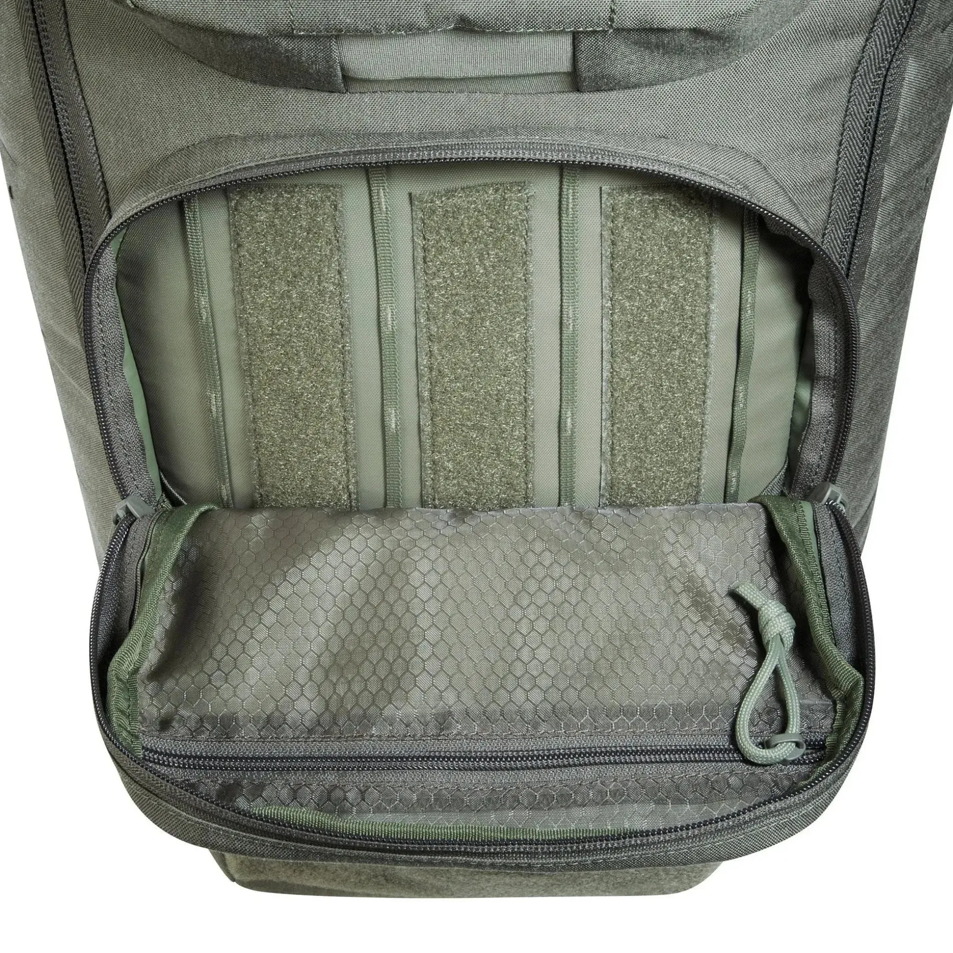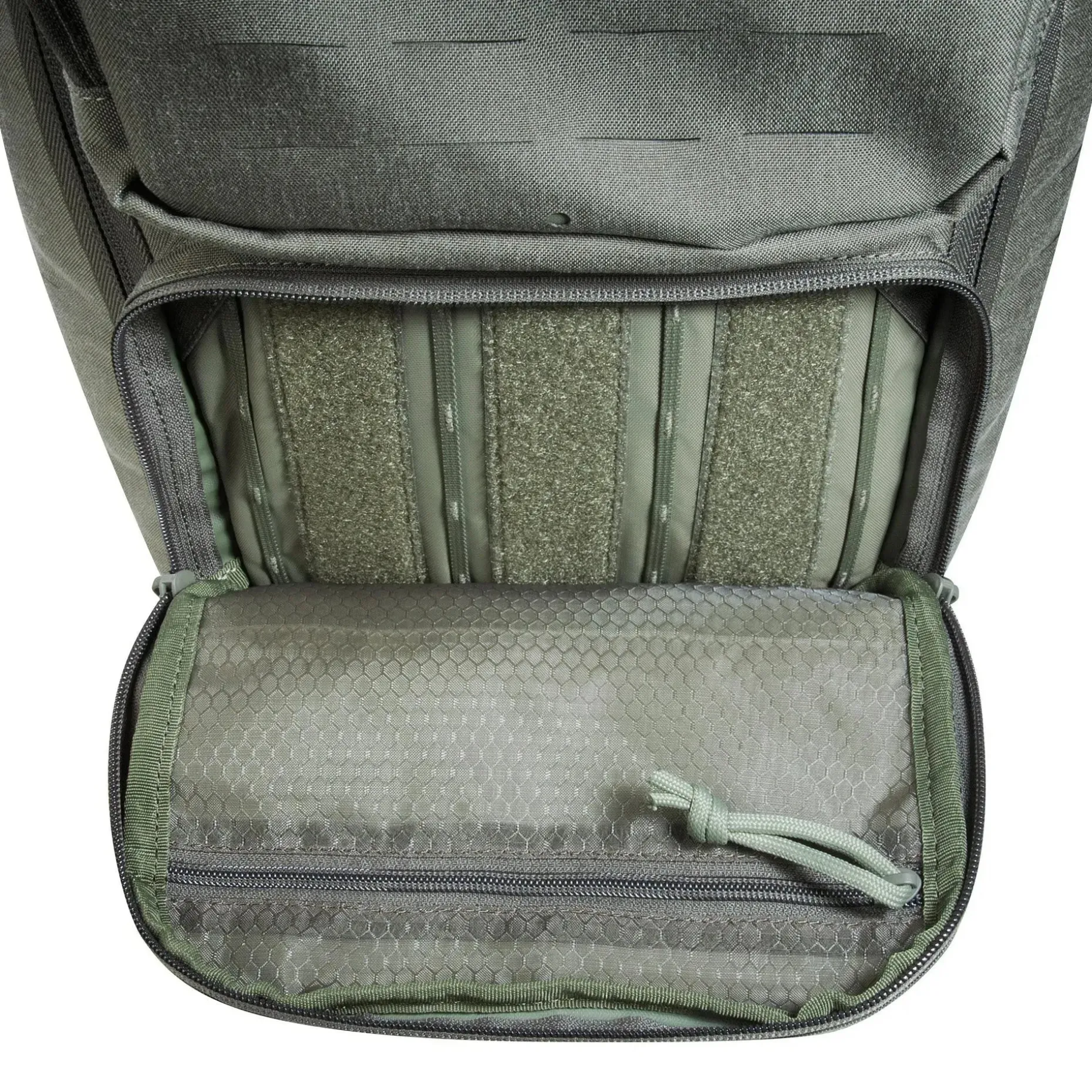 - Große, weit zu öffnende Deckelklappe mit Klettflächen und Daisy-Chain-System innen